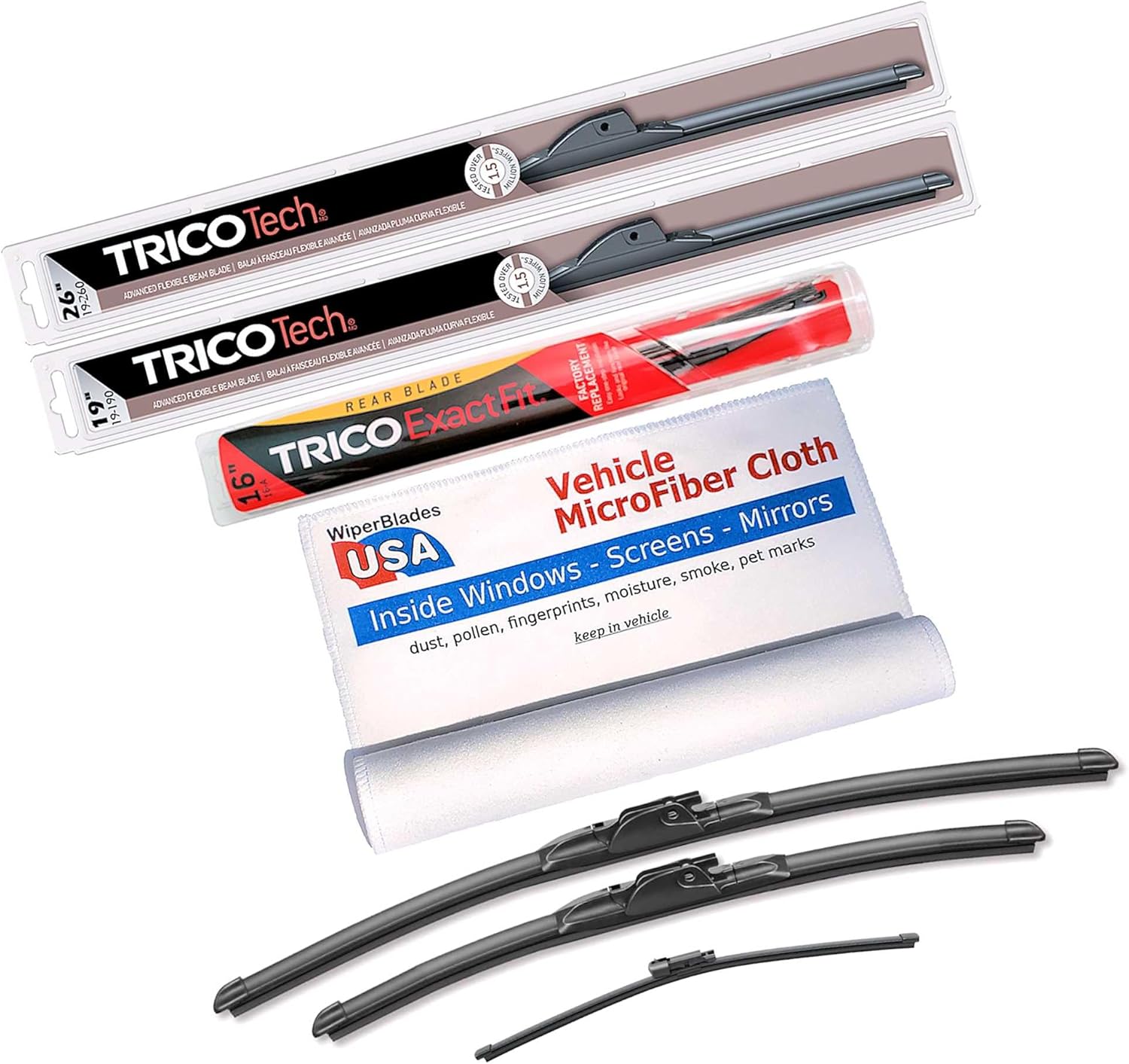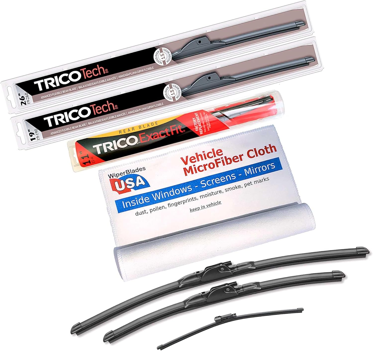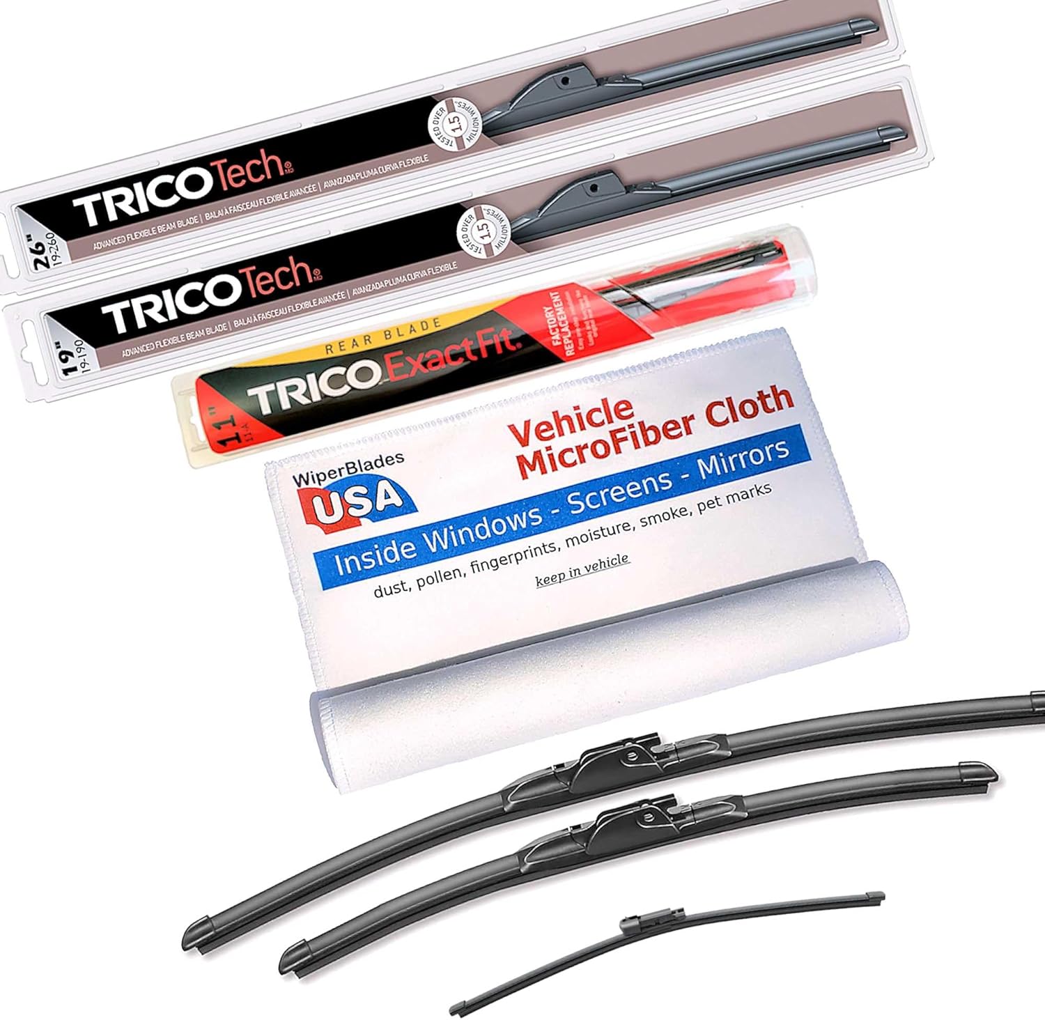 Beam Wiper Blades Set +Trico ExactFit Rear wiper compatible with Toyota Venza 2021!Trico Tech Beam Wiper Blades - Advanced Flexible Beam Blade Trico Tech Beam Blades are a great choice and are compatible with Toyota Venza 2021 because: Trico Tech Wipers have a one-piece wiper structure eliminates areas for snow, ice and road debris to clog the wiper, providing excellent visibility in all types of weather Memory Curve Steel beam provides uniform pressure for a clean, clear wipeInnovative low-profile stylish design provides uniform wipe Superior all-weather performance Exclusive dual-point coupler prevents streakingSWIFT® Easy Connection Technology Precision cut wiping edge is tested to perform over 1.5 million cyclesAnd Trico is the #1 wiper manufacturer in the United States. So you know you can depend on them.
