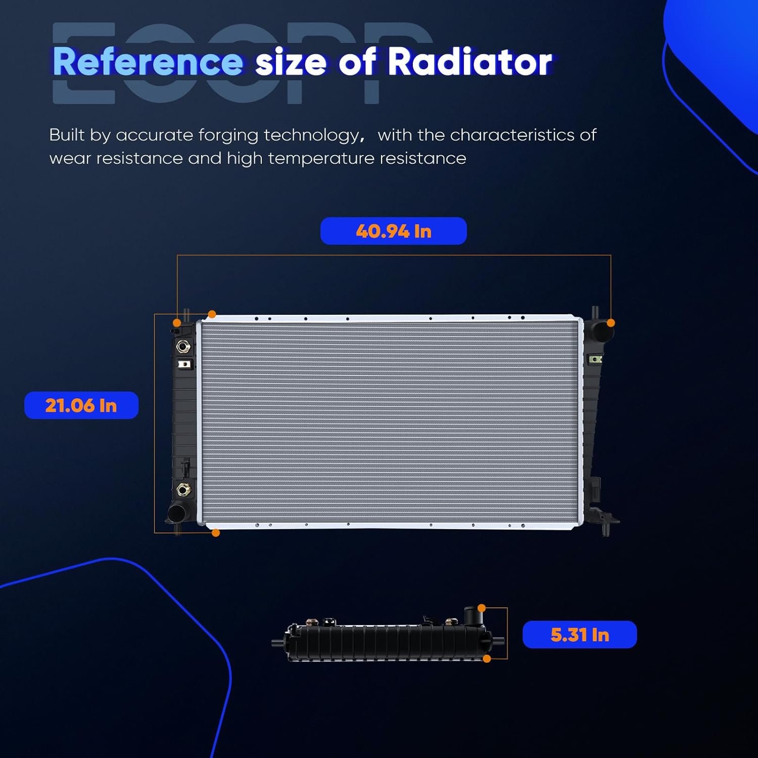 APPLICATIONS:Compatible for 2004 for Ford for Expedition Eddie Bauer 4.6L2004-2006 for Ford for Expedition Eddie Bauer 5.4L2006 for Ford for Expedition King Ranch 5.4L2005-2006 for Ford for Expedition Limited 5.4L2004 for Ford for Expedition NBX 4.6L2004 for Ford for Expedition NBX 5.4L2004 for Ford for Expedition XLS 4.6L2004-2006 for Ford for Expedition XLS 5.4L2004 for Ford for Expedition XLT 4.6L2004-2006 for Ford for Expedition XLT 5.4L2004 for Ford for Expedition XLT Sport 4.6L2004 2006 for Ford for Expedition XLT Sport 5.4L2008 for Ford for F-150 FX2 4.6L2007-2008 for Ford for F-150 FX2 5.4L2005-2008 for Ford for F-150 FX4 5.4L2006-2008 for Ford for F-150 Harley-Davidson Edition 5.4L2005-2008 for Ford for F-150 King Ranch 5.4L2005-2008 for Ford for F-150 Lariat 5.4L2008 for Ford for F-150 Limited 5.4L2005-2008 for Ford for F-150 STX 4.2L2005-2008 for Ford for F-150 STX 4.6L2008 for Ford for F-150 THE 60TH ANNIVERSARY EDITION 4.6L2008 for Ford for F-150 THE 60TH ANNIVERSARY EDITION 5.4L2005-2008 for Ford for F-150 XL 4.2L2005-2008 for Ford for F-150 XL 4.6L2005-2008 for Ford for F-150 XL 5.4L2005-2008 for Ford for F-150 XLT 4.2L2005-2008 for Ford for F-150 XLT 4.6L2005-2008 for Ford for F-150 XLT 5.4L2008 for Ford for F-150 XTR 4.6L2008 for Ford for F-150 XTR 5.4L2006-2008 for Lincoln for Mark LT Base 5.4L2005 for Lincoln for Navigator Base 5.4L2006 for Lincoln for Navigator Luxury 5.4L2006 for Lincoln for Navigator Ultimate 5.4LOEM: 2818Automotive RadiatorPACKAGE INCLUDED:1 PCS radiator