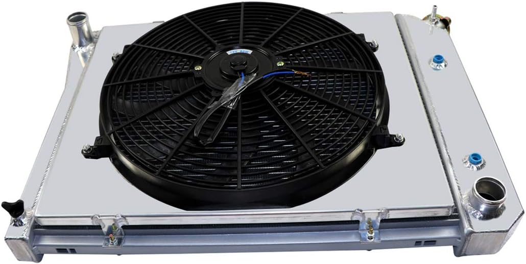 Package Include:1 X 3 Row Aluminum Radiator1 X Aluminum Shroud1 X 16" Fan (Includes mounting kits)Radiator Size:High Performance Racing Spec.3 Row of tubes Core Racing DesignOverall Dimensions: Height: 19'' X Width: 27''Core Dimensions: Height: 17'' X Width: 21''Inlet Location: 1 1/2 in. Driver SideOutlet Dimensions: 1 1/2 in. Passenger SideTransmission Oil Cooler Fitting Type: φ32*215*G1/4(Z), Inverted FlareFan Specification:Diameter : 16'' (Blade to Blade)Voltage: DC 12 VoltsWattage: 120WNumber of Blades: 10 S-Type bladesMaximum Fan CFM(Cubic Feet per Minute): 3,000 cfmMaximum Fan RPM(Revolution(s) Per Minute): 2000±10%Amp Draw: 10OE/OEM: 571,CC571,CU571,1605-560203,9147,43-3571Application:Radiator Replacement for Chevy seriesRadiator Replacement for 1969-1979 Chevrolet Nova 3.8L 4.1L 4.3L V6 5.0L 5.7L V8