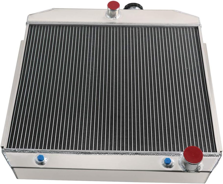 Core Size: 17-1/4" High x 21-1/2" Wide x 2-5/8" Thick Overall Size: 24-1/2 High x 23-3/4" Wide x 3" Tank Thickness Upper inlet: 1-1/2" located in the CENTER Lower outlet: 1-3/4" located on the PASSENGER side