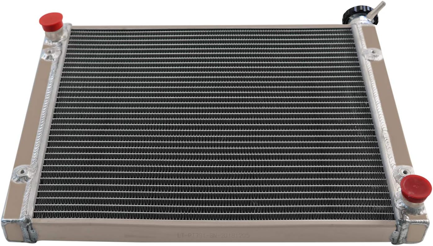 Welcome to our store, my deal buyer !The aluminum radiator is designed to provide maximum cooling efficiency to prevent premature engine failure. Its light-weight, and high-heat transferring aluminum features a tube and fin design that, dramatically increases surface area that enables the heat to dissipate more efficiently.This Aluminum Radiator is at least 40% more efficient than stock ones. Most importantly, it has a much higher capacity for coolant than stock ones, which means that your cooling system will be more efficient and will be more resistant to temperature surges in racing applications. Features: Full set in box and 100% brand new. 30% more cooling capacity than standard radiator. The core of the radiator is welded in vacuum brazing furnace, no epoxy. The tanks are 100% welded by TIG. 100% quality assurance tested.