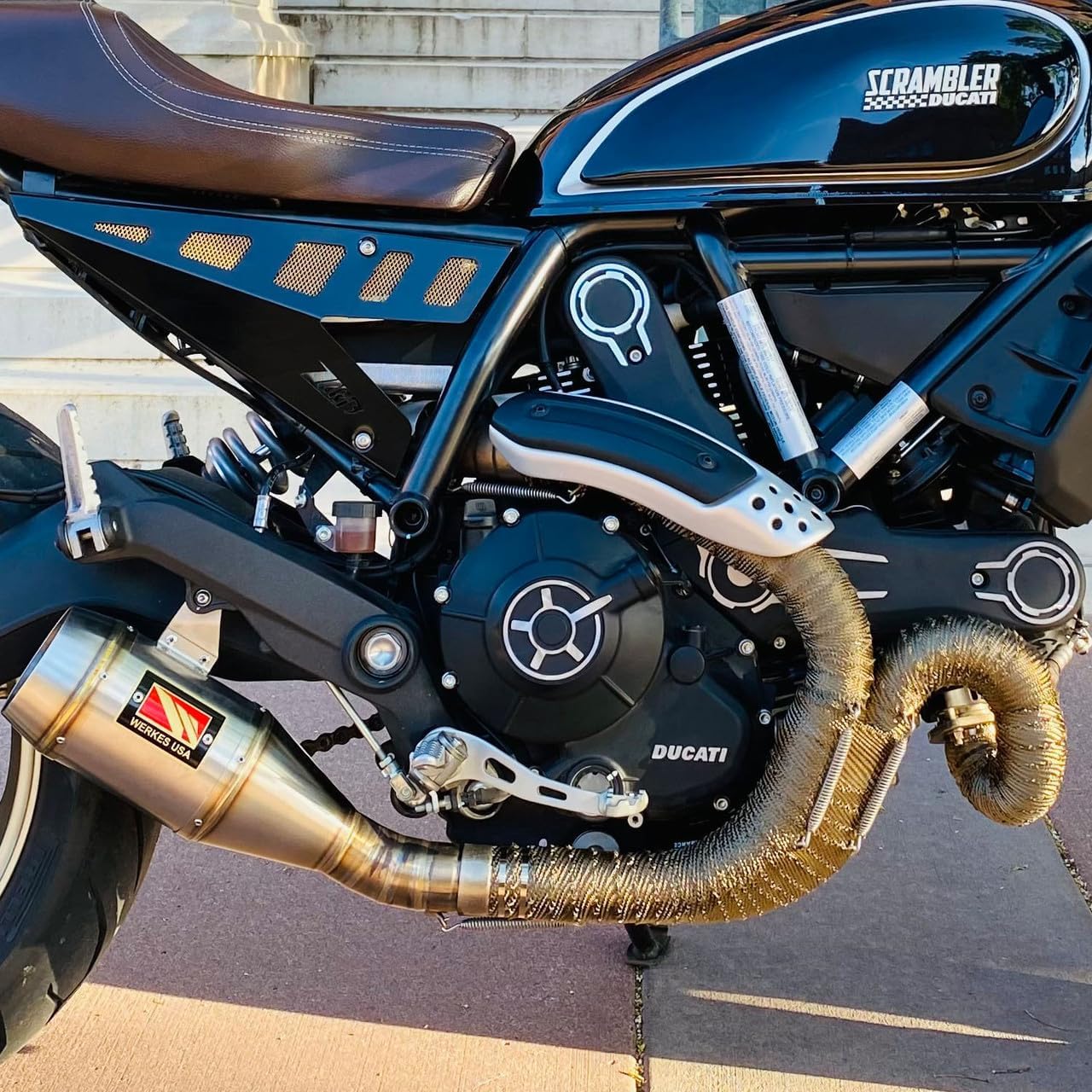 DEI Titanium exhaust wrap, with LR Technology, is made from pulverized lava rock and stranded into a fiber material and woven into a proprietary weave. Titanium wrap is engineered to be stronger than most wraps and more durable for improved thermal performance and reliability. Titanium wrap withstands 1800 degrees Fahrenheit direct heat and 2500-degree intermittent heat. It promotes increased flow for improved performance while reducing temperature and vibration breakdown. Perfect for any automotive or motorcycle application. This kit includes all you need for any set of V8 headers: Two 2" x 50' rolls of Exhaust Wrap, eight 8" and four 4" stainless steel Locking Ties, and Locking Tie tool. Note of Caution: Wrap is not designed to be removed after it has been through heat cycles. After the fibers have been heated they lose their initial flexibility. This does not reduce the thermal properties of the exhaust wrap. Be aware of this before you decide to remove the wrap. Design Engineering Hi-Temp Silicone Coating spray is NOT recommended for DEI Titanium wrap. Note about Titanium Exhaust Systems: DEI does NOT recommend wrapping Titanium exhausts. The alloys used in the production of titanium exhaust systems tend to be thin and are designed to dissipate heat quickly. By wrapping the exhaust, the additional heat can make the titanium alloy turn brittle and prone to premature cracking. DEI recommends using alternatives such as their flexible heat shields when seeking to reduce the heat on titanium exhaust systems.