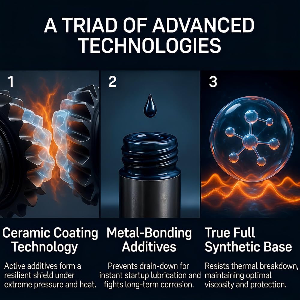 | Material | Full Synthetic Hydrocarbon Base Oil, Ceramic Friction Modifier, Sulfur-Phosphorus Extreme Pressure Additive Package |