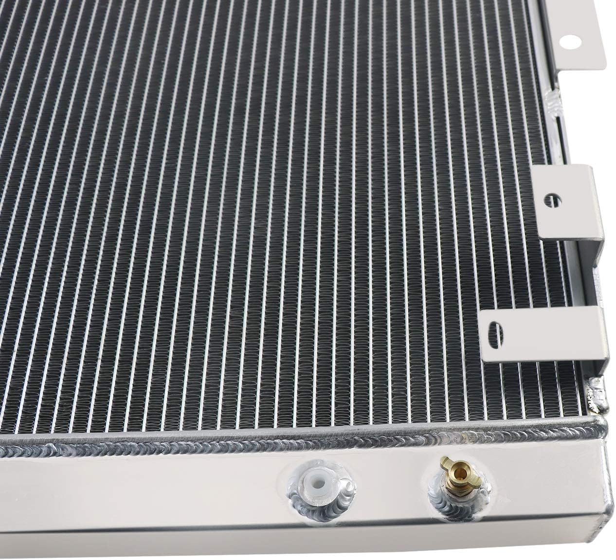Radiator Size: Row: 3 Row Core Material: Full Aluminum Radiator Cap: included Core and Tank: All Aluminum Core Size: 22.76" W x 16.34" H Overall Size:25.67" W x 21.38" H Inlet/Outlet: 1.57" & 1.57" trans cooler: Included Transmission Oil Cooler Fitting Type: 1/8-27NPT Vehicle Fitment: For 1975 1976 1977 1978 Ford Mustang II 5.0L(302ci) V8 Engine