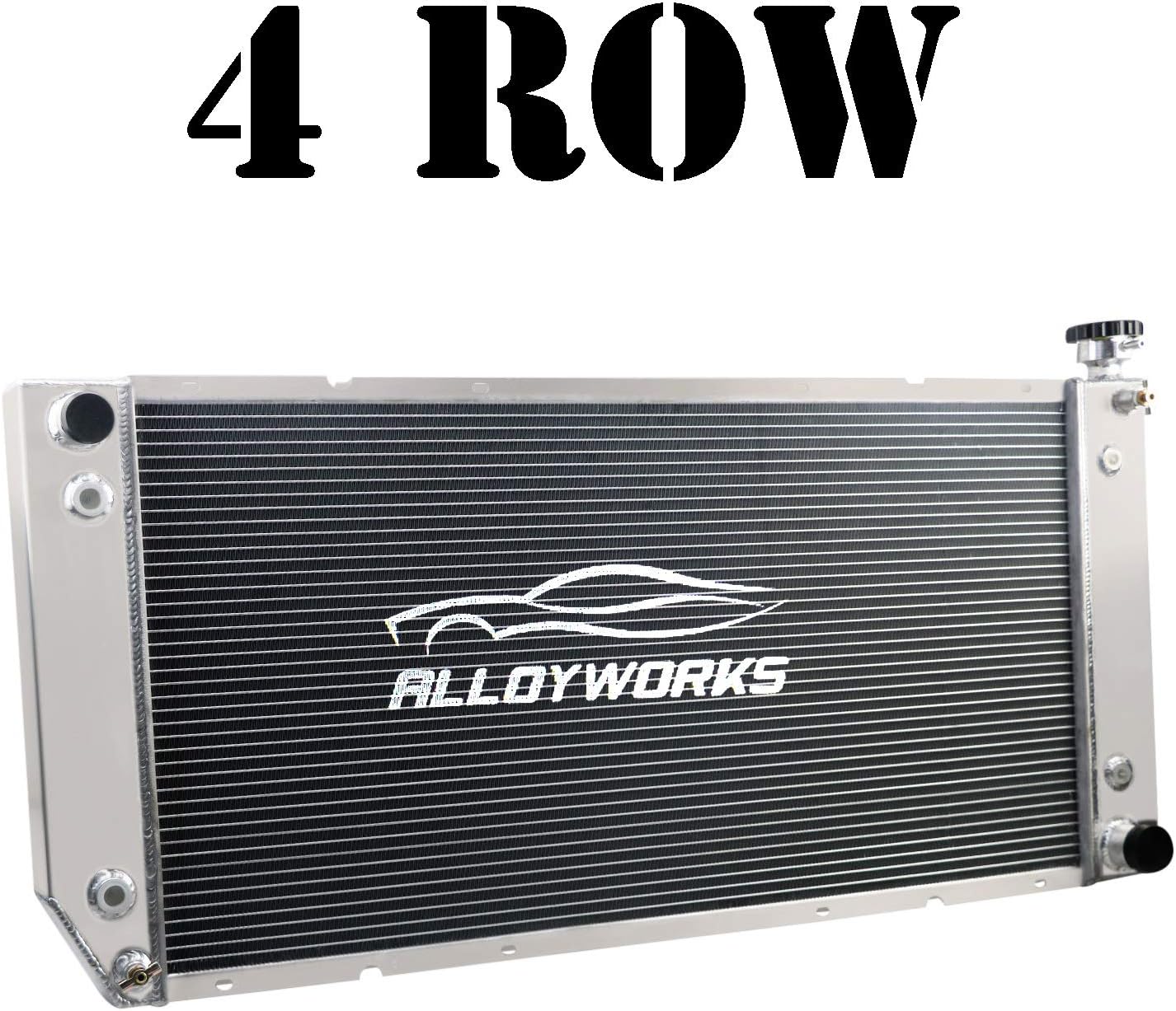 Vehicle Fitment:For 1988-1993 Chevy C/K Truck 5.7L - 7.4LFor 1994-1995 Chevy C/K Truck 5.7LFor 1996-1999 Chevy C/K Truck 5.0L - 5.7L For 2000 Chevy C/K Truck 5.7LFor 1992-1993 Chevy Suburban 5.7L - 7.4LFor 1994-1999 Chevy Suburban 5.7LFor 1992-1994 Chevy C/K Blazer 5.7LFor 1995-2000 Chevy Tahoe 5.7LFor 1992-2000 Gmc Yukon 5.7LFor 1999-2000 Cadillac Escalade 5.7LFor 1999-2000 Cadillac Escalade Ext 5.7L Radiator Size: Row: 4 Row Core Material: Full Aluminium Radiator Cap: Included Core And Tank: All Aluminum Core Size: 34" Wide X 17 1/4" High Tank Size: 3 1/4" X 18 1/2" Inlet Hose Connection: 1 5/16" Driver Side Outlet Hose Connection: 1 9/16" Passenger Side Transmission Cooler: Yes Engine Oil Cooler: Yes