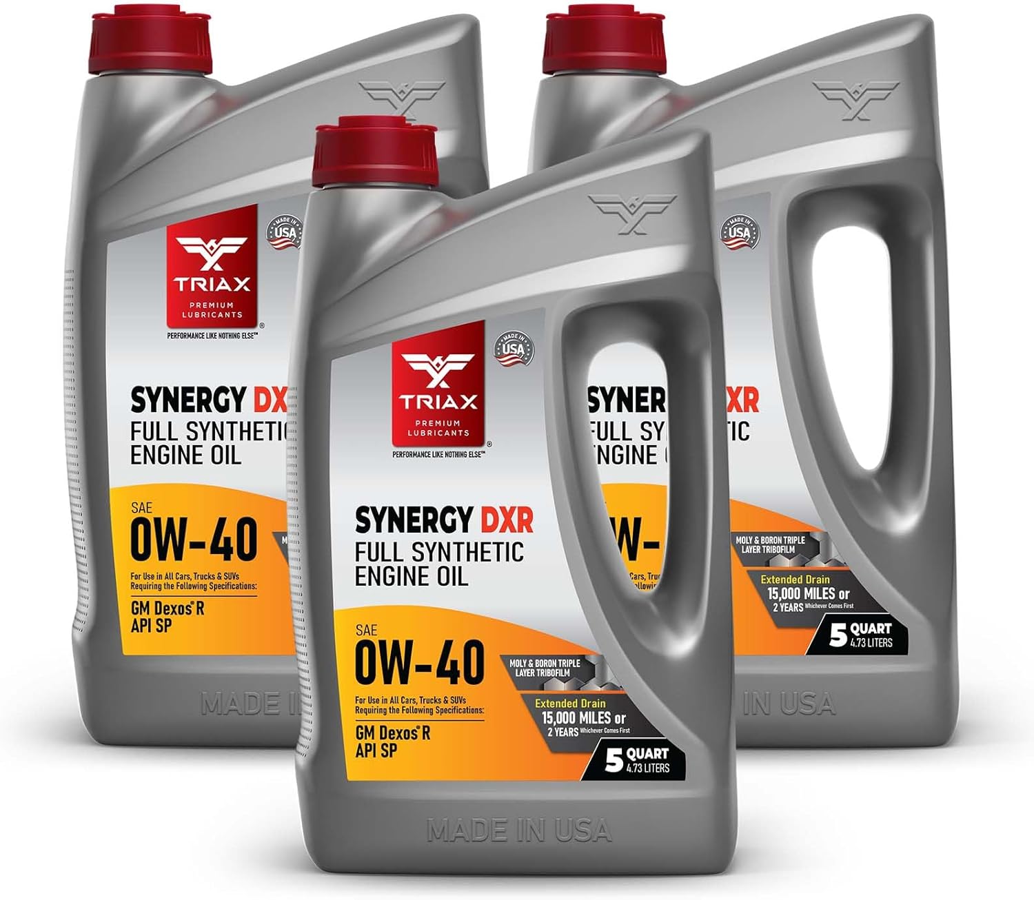 TRIAX Synergy DXR 0W-40 is an ultra-premium full synthetic engine oil specifically designed for compatibility with high-performance GM engines requiring the dexos R specification. Formulated with advanced friction modifiers and thermally stable synthetic base oils, DXR delivers outstanding protection under extreme conditions—on the street or the track. This oil provides maximum film strength at high temperatures, superior shear stability, and rapid cold start flow to safeguard powerful V8 engines. It is compatible with LT1, LT4, and other supercharged or naturally aspirated GM performance platforms.