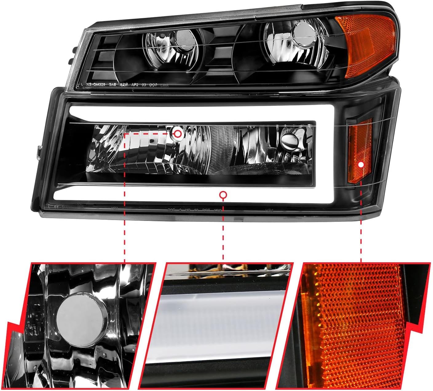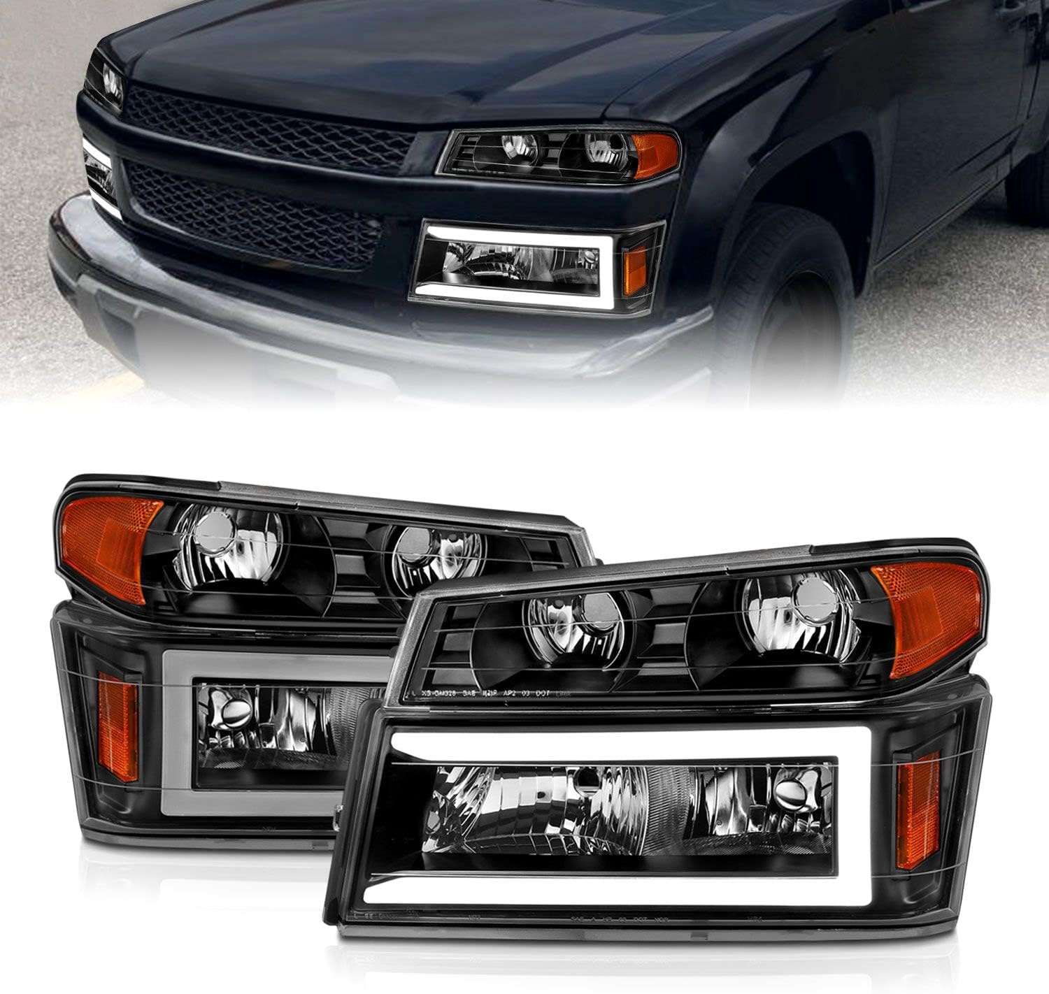 ANZO - 04-12 GM Colorado/Canyon/I-Series Crystal Headlights - w/ Light Bar Black Housing 4pcs (111558)
