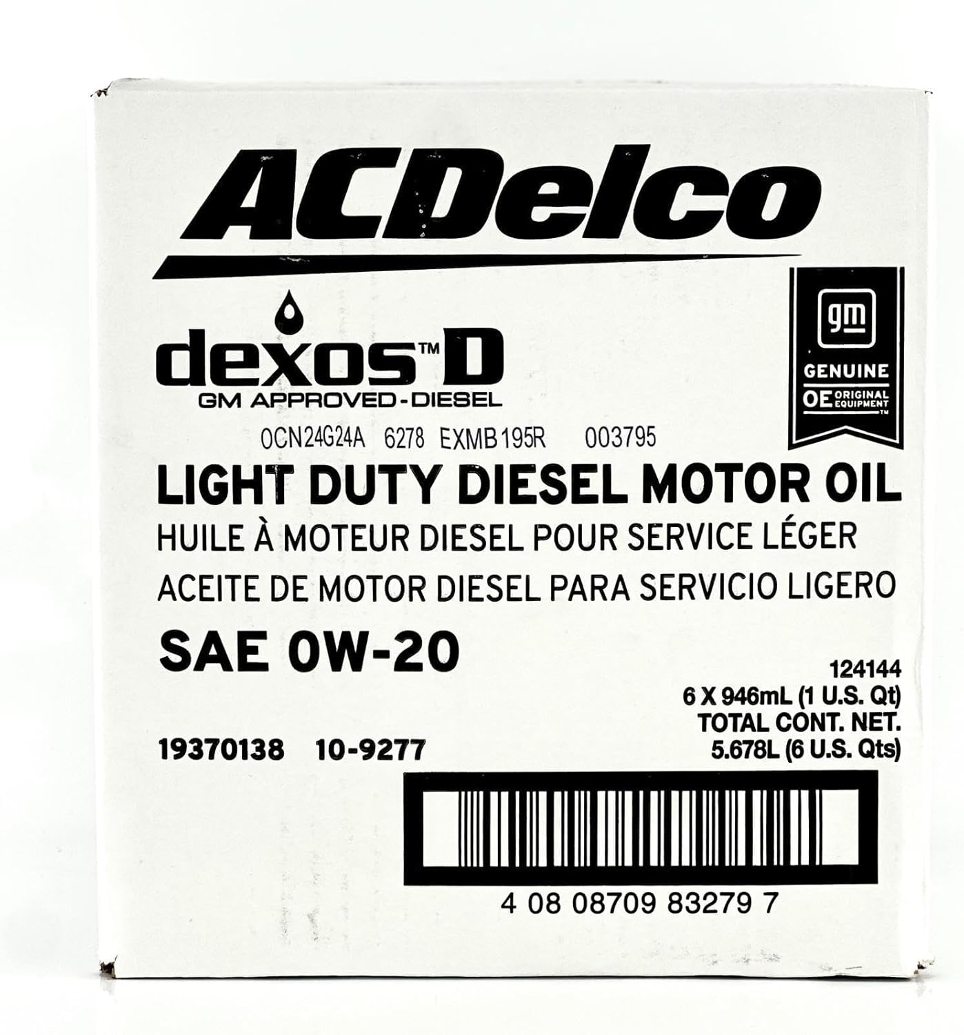ACDelco GM Original Equipment Motor Oils are designed, engineered, and tested to rigorous standards, and are backed by General Motors. Dexos oil is the latest low viscosity diesel engine oil specification from GM. It is designed to meet the enhanced performance needs of today's GM vehicles. Unlicensed products have not gone through GM's rigorous testing process, are not monitored for quality, and are not approved or recommended for use in GM vehicles. ACDelco GM Original Equipment parts are the true OE parts installed during the production of or validated by General Motors for GM vehicles. Some ACDelco GM Original Equipment parts may have formerly appeared as GM Genuine Parts (OE) or ACDelco Professional.