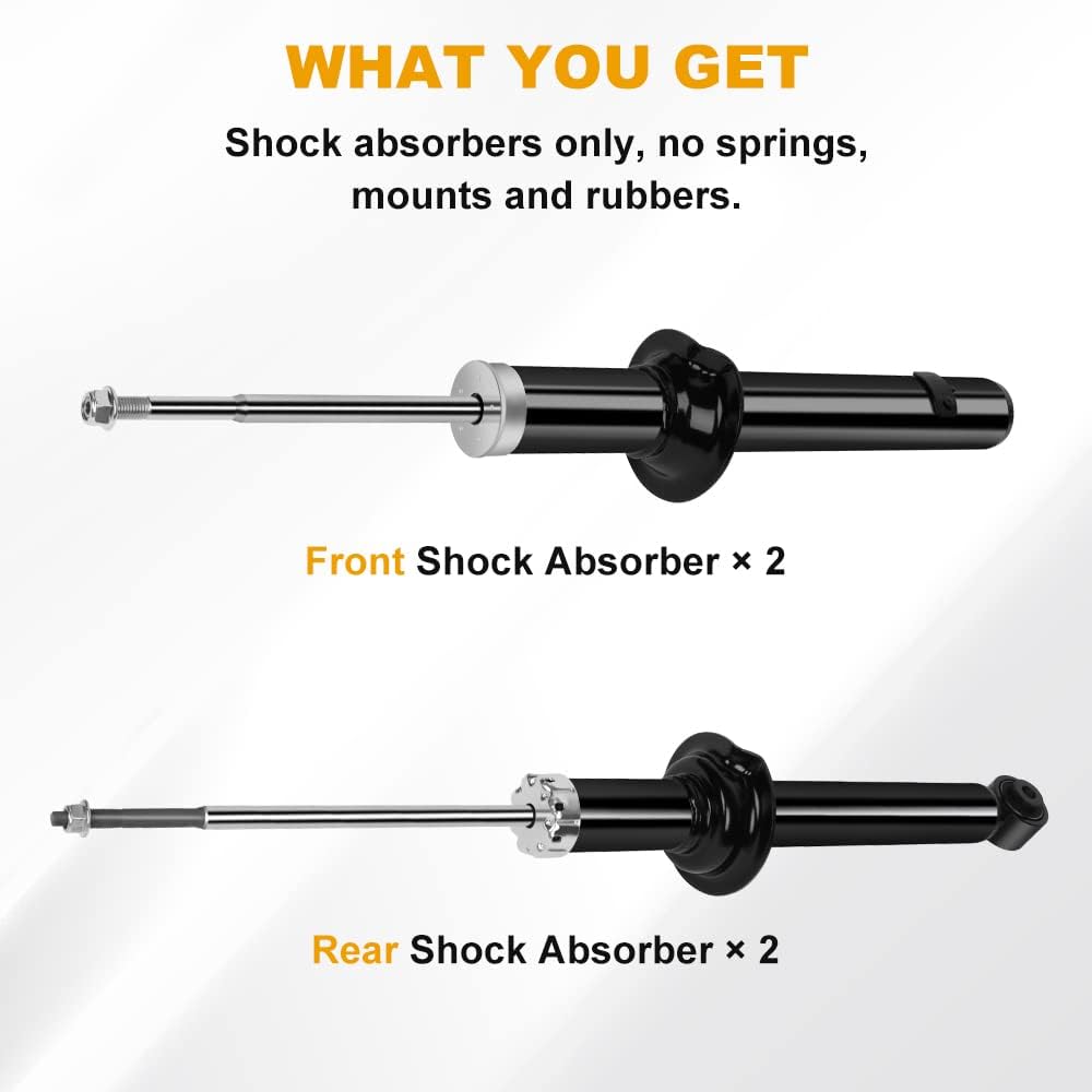 Features:1.Equal or Greater OE Performance2.Stock Parts Direct Replacement3.Easy Installation4.Long-Term Durability5.Avoid Oil Leakage and Abnormal Noise6.Better Stability and ComfortFit for:2004-2008 for Acura TL Base Sedan 4-Door 2007-2008 for Acura TL Type-S Sedan 4-Door 2003 for Honda for Accord Coupe Coupe 2-Door 2003-2005 for Honda for Accord DX Sedan 4-Door 2003-2007 for Honda for Accord EX Coupe 2-Door 2003-2007 for Honda for Accord EX Sedan 4-Door 2005-2007 for Honda for Accord Hybrid Sedan 4-Door 2003-2007 for Honda for Accord LX Coupe 2-Door 2007 for Honda for Accord LX SE Coupe 2-Door 2007 for Honda for Accord LX SE Sedan 4-Door 2003-2007 for Honda for Accord LX Sedan 4-Door 2006 for Honda for Accord LX Special Edition Sedan 4-Door 2005 for Honda for Accord SE Coupe 2-Door 2007 for Honda for Accord Special Edition Sedan 4-Door 2006-2007 for Honda for Accord Value Package Sedan 4-Door Important Notes:To ensure that the shock absorber is not damaged,the shock absorber will be packaged and transported as TWO packages sometimes. They may come with different packing,but their performance is no difference.Specifications:Placement on Vehicle: Front Rear, Left, RightReplacement NO:341330 72123 341331 71372Package Includes:4 pcs Shocks Absorbers (NO rubber buffer,strut mount and coil spring).