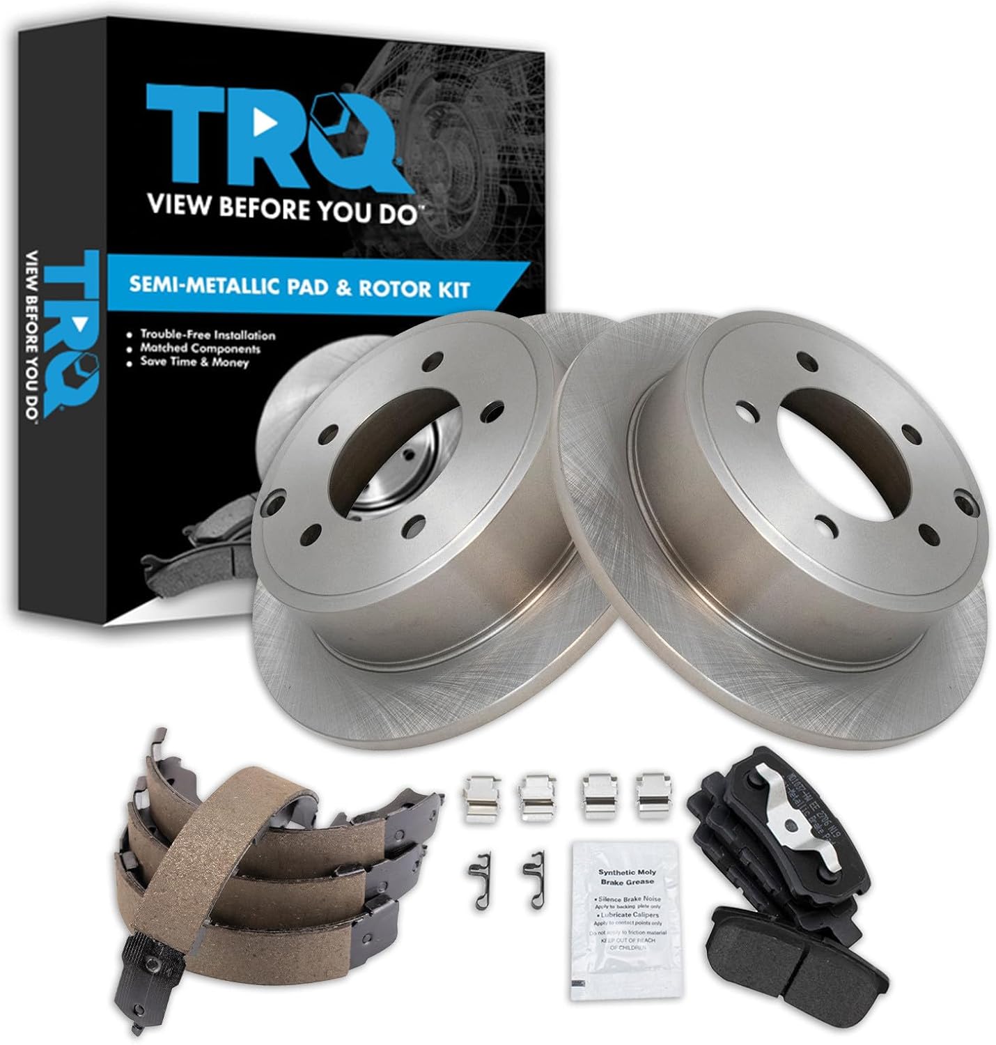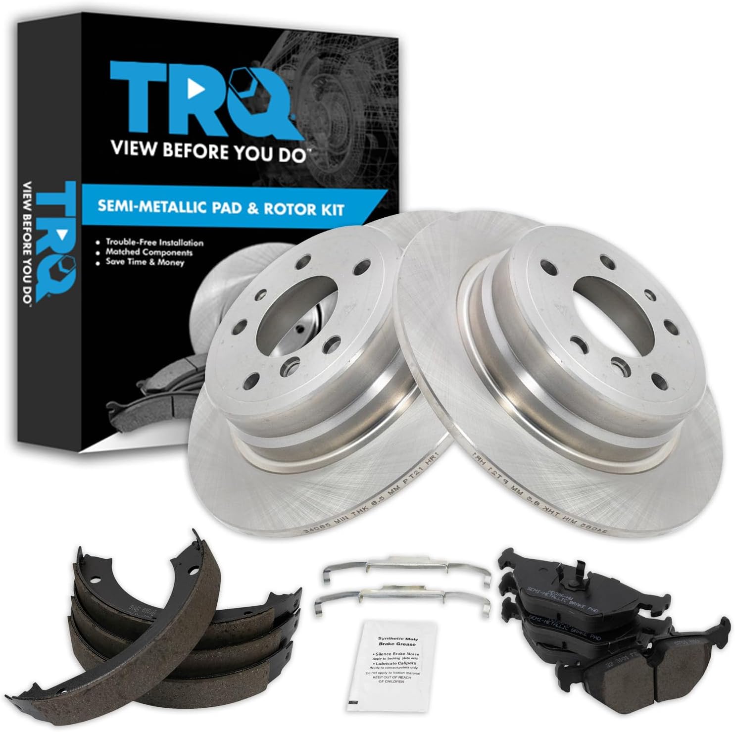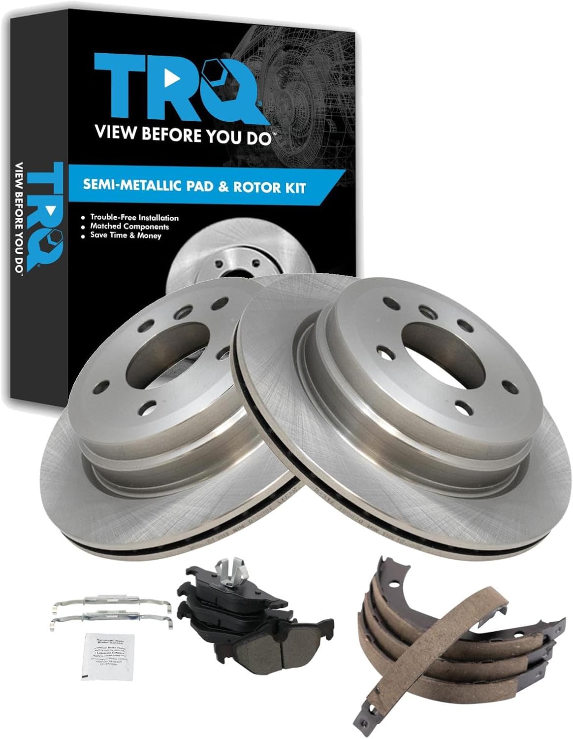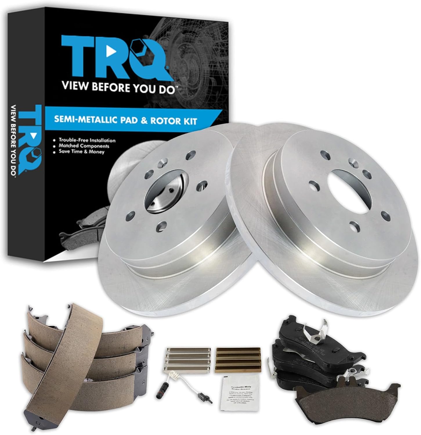 Semi-Metallic Brake Pad & Rotor KitKit Includes(1) Rear Parking Brake Shoe Set(1) Rear Semi-Metallic Brake Pad Set(2) Rear Brake RotorsFitmentMercedes Benz 220 1968-73 - Rear Rear Disc BrakesMercedes Benz 230 1974 - Rear Rear Disc BrakesMercedes Benz 240D 1974 - Rear Rear Disc Brakes 1975-83 - RearMercedes Benz 250 1968-72 - Rear Rear Disc BrakesMercedes Benz 280 1973-74 - Rear Rear Disc Brakes 1975-76 - RearMercedes Benz 280C 1973-74 - Rear Rear Disc Brakes 1975-76 - RearMercedes Benz 280CE 1978-81 - RearMercedes Benz 280E 1977-81 - RearMercedes Benz 280S 1975-76 - RearMercedes Benz 280SE 1973 - Rear Rear Disc Brakes 1977-80 - RearMercedes Benz 300CD 1978-84 - Rear 1985 - To 4/30/85 Production Date RearMercedes Benz 300D 1975-84 - Rear 1985 - To 4/30/85 Production Date RearMercedes Benz 300SD 1985 - RearMercedes Benz 300SDL 1986-87 - RearMercedes Benz 300SE 1988-90 - Rear without Acceleration Slip Regulation (ASR) 1991 - To 3/31/91 Production Date Rear without Acceleration Slip Regulation (ASR)Mercedes Benz 300SEL 1988-91 - Rear without Acceleration Slip Regulation (ASR)Mercedes Benz 300TD 1985 - To 4/30/85 Production Date RearMercedes Benz 350SD 1991 - RearMercedes Benz 350SDL 1990-91 - RearMercedes Benz 380SE 1984-85 - RearMercedes Benz 380SEC 1982-83 - RearMercedes Benz 380SEL 1981-83 - RearMercedes Benz 380SL 1982-85 - RearMercedes Benz 420SEL 1990-91 - Rear without Acceleration Slip Regulation (ASR)Mercedes Benz 450SE 1973-74 - Rear Rear Disc Brakes 1975-76 - RearMercedes Benz 450SEL 1973-74 - Rear Rear Disc Brakes 1975-76 - Rear 1977-79 - Base Model Rear 1980 - RearMercedes Benz 450SL 1973-74 - Rear Rear Disc Brakes 1975-80 - RearMercedes Benz 450SLC 1973-74 - Rear Rear Disc Brakes 1975-80 - RearMercedes Benz 500SEC 1984-85 - RearMercedes Benz 500SEL 1985 - RearMercedes Benz 560SEC 1986-91 - Rear without Acceleration Slip Regulation (ASR)Mercedes Benz 560SEL 1986-91 - Rear without Acceleration Slip Regulation (ASR)Mercedes Benz 560SL 1986-89 - RearProduct AttributesFriction Material Composition: Semi-metallicBrake Pad Bonding Type: Premium PosiBrake Pad Friction Material: Semi-MetallicProduct Features Positive Molded - Less dust resulting in clean wheels G3000 Casting Alloy - Reduced noise and improved wear resistance Application Specific Design - Extended service life, no modificationsItem DetailsTRQ brake kits are designed to restore your brake system to like-new performance. TRQ brake pads are positive molded, thermal scorched, chamfered, and utilize a multi-layer shim for enhanced performance and service life. TRQ rotors have a non-directional finish that reduces the break-in period for new rotors as well as reducing vibrations throughout the rotor’s lifecycle. All products are fit and road-tested in our Massachusetts R&D facility to ensure we deliver on our promise of Trusted Reliable Quality.Reference Numbers14200620270166227277402729119272944032034205820875PG99419941FZN9941P9941RBD61925BR3203PRT1448Z875