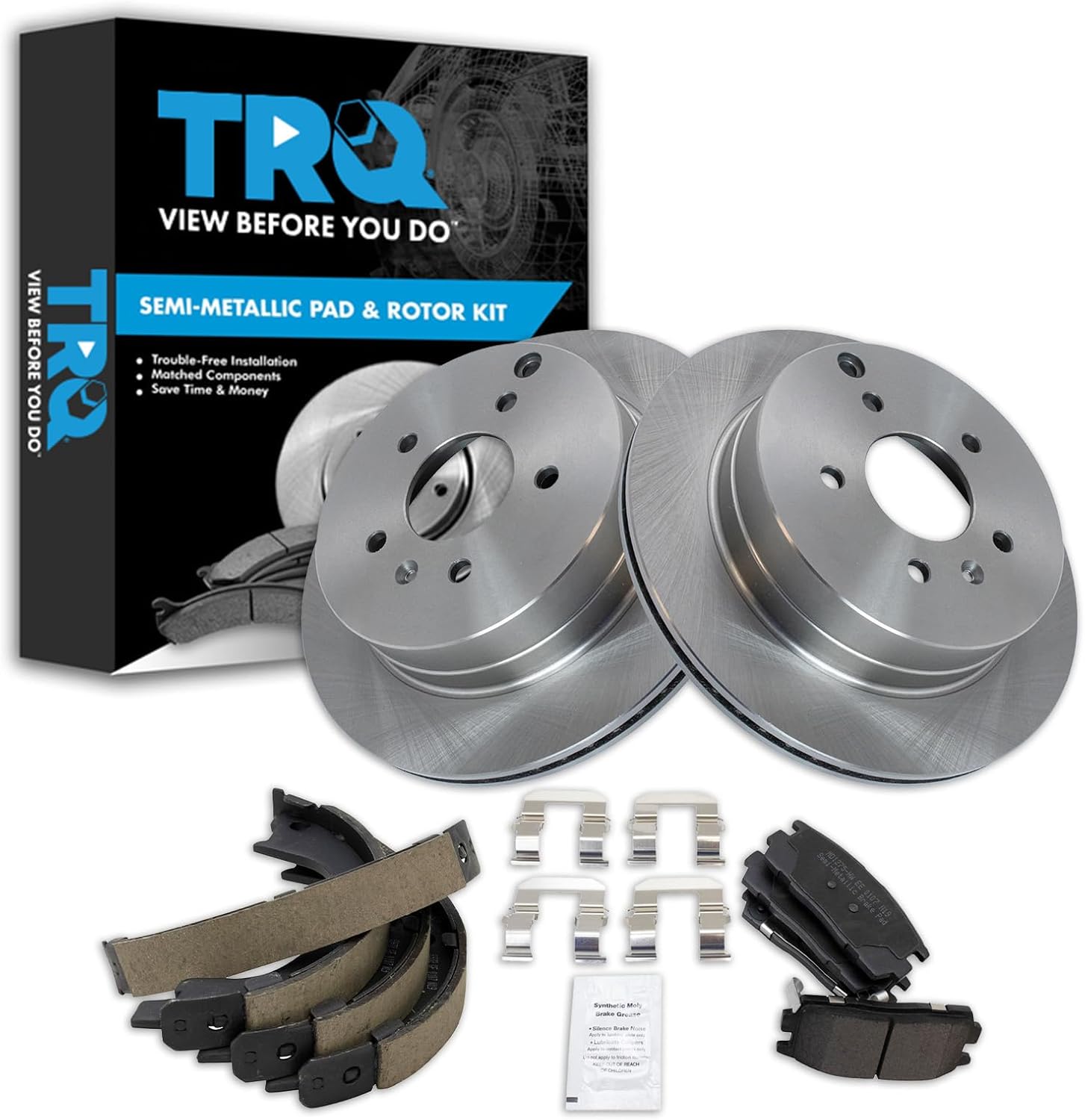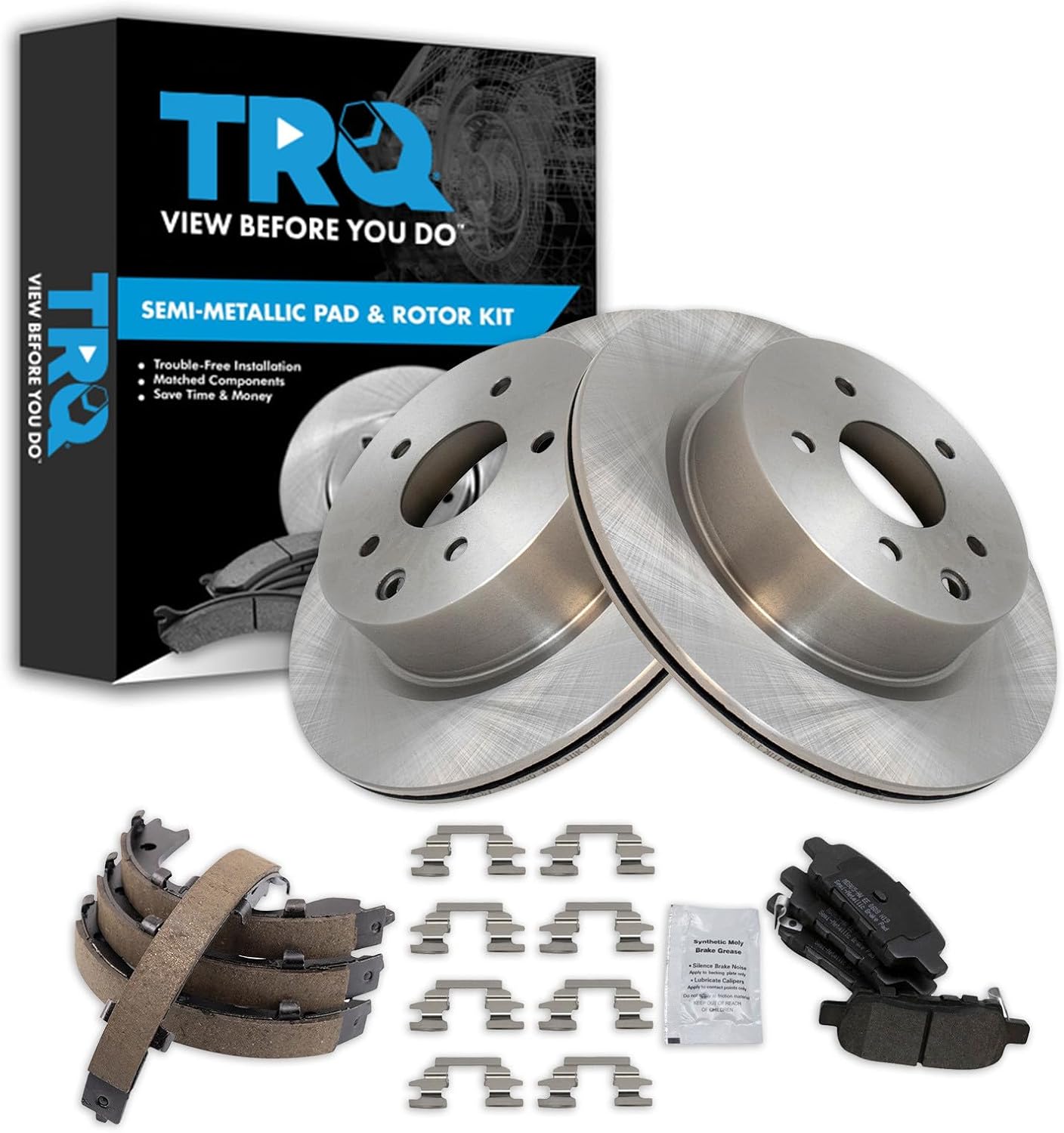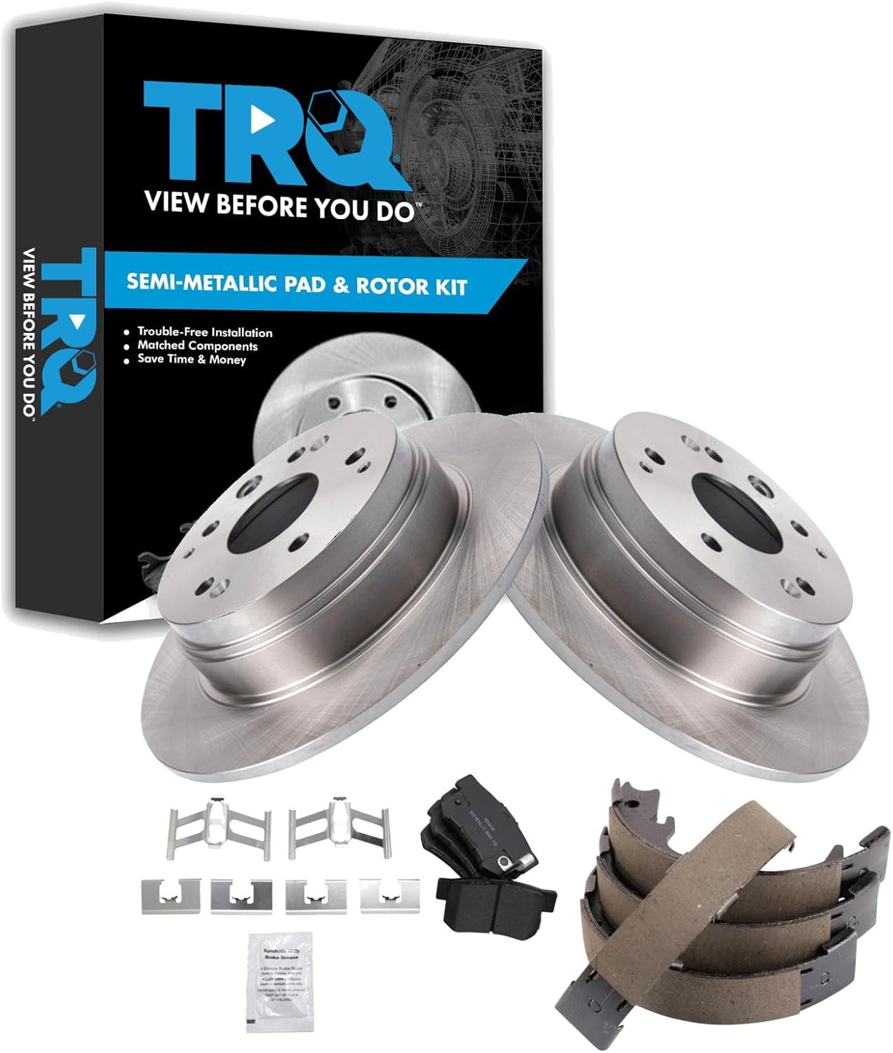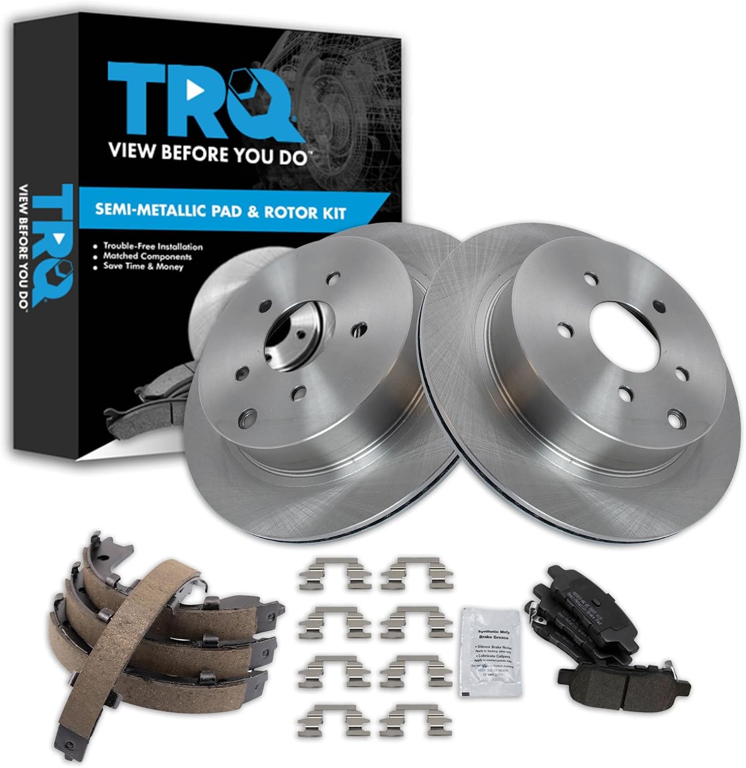 Semi-Metallic Brake Pad & Rotor KitKit Includes(1) Rear Parking Brake Shoe Set(1) Rear Semi-Metallic Brake Pad Set(2) Rear Brake RotorsFitmentMercedes Benz 220 1968-73 - Rear Rear Disc BrakesMercedes Benz 230 1974 - Rear Rear Disc BrakesMercedes Benz 240D 1974 - Rear Rear Disc Brakes 1975-83 - RearMercedes Benz 250 1968-72 - Rear Rear Disc BrakesMercedes Benz 280 1973-74 - Rear Rear Disc Brakes 1975-76 - RearMercedes Benz 280C 1973-74 - Rear Rear Disc Brakes 1975-76 - RearMercedes Benz 280CE 1978-81 - RearMercedes Benz 280E 1977-81 - RearMercedes Benz 280S 1975-76 - RearMercedes Benz 280SE 1973 - Rear Rear Disc Brakes 1977-80 - RearMercedes Benz 300CD 1978-84 - Rear 1985 - To 4/30/85 Production Date RearMercedes Benz 300D 1975-84 - Rear 1985 - To 4/30/85 Production Date RearMercedes Benz 300SD 1985 - RearMercedes Benz 300SDL 1986-87 - RearMercedes Benz 300SE 1988-90 - Rear without Acceleration Slip Regulation (ASR) 1991 - To 3/31/91 Production Date Rear without Acceleration Slip Regulation (ASR)Mercedes Benz 300SEL 1988-91 - Rear without Acceleration Slip Regulation (ASR)Mercedes Benz 300TD 1985 - To 4/30/85 Production Date RearMercedes Benz 350SD 1991 - RearMercedes Benz 350SDL 1990-91 - RearMercedes Benz 380SE 1984-85 - RearMercedes Benz 380SEC 1982-83 - RearMercedes Benz 380SEL 1981-83 - RearMercedes Benz 380SL 1982-85 - RearMercedes Benz 420SEL 1990-91 - Rear without Acceleration Slip Regulation (ASR)Mercedes Benz 450SE 1973-74 - Rear Rear Disc Brakes 1975-76 - RearMercedes Benz 450SEL 1973-74 - Rear Rear Disc Brakes 1975-76 - Rear 1977-79 - Base Model Rear 1980 - RearMercedes Benz 450SL 1973-74 - Rear Rear Disc Brakes 1975-80 - RearMercedes Benz 450SLC 1973-74 - Rear Rear Disc Brakes 1975-80 - RearMercedes Benz 500SEC 1984-85 - RearMercedes Benz 500SEL 1985 - RearMercedes Benz 560SEC 1986-91 - Rear without Acceleration Slip Regulation (ASR)Mercedes Benz 560SEL 1986-91 - Rear without Acceleration Slip Regulation (ASR)Mercedes Benz 560SL 1986-89 - RearProduct AttributesFriction Material Composition: Semi-metallicBrake Pad Bonding Type: Premium PosiBrake Pad Friction Material: Semi-MetallicProduct Features Positive Molded - Less dust resulting in clean wheels G3000 Casting Alloy - Reduced noise and improved wear resistance Application Specific Design - Extended service life, no modificationsItem DetailsTRQ brake kits are designed to restore your brake system to like-new performance. TRQ brake pads are positive molded, thermal scorched, chamfered, and utilize a multi-layer shim for enhanced performance and service life. TRQ rotors have a non-directional finish that reduces the break-in period for new rotors as well as reducing vibrations throughout the rotor’s lifecycle. All products are fit and road-tested in our Massachusetts R&D facility to ensure we deliver on our promise of Trusted Reliable Quality.Reference Numbers14200620270166227277402729119272944032034205820875PG99419941FZN9941P9941RBD61925BR3203PRT1448Z875