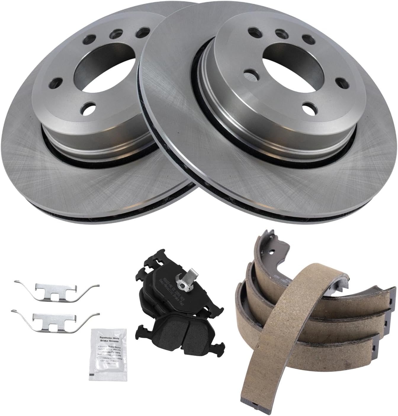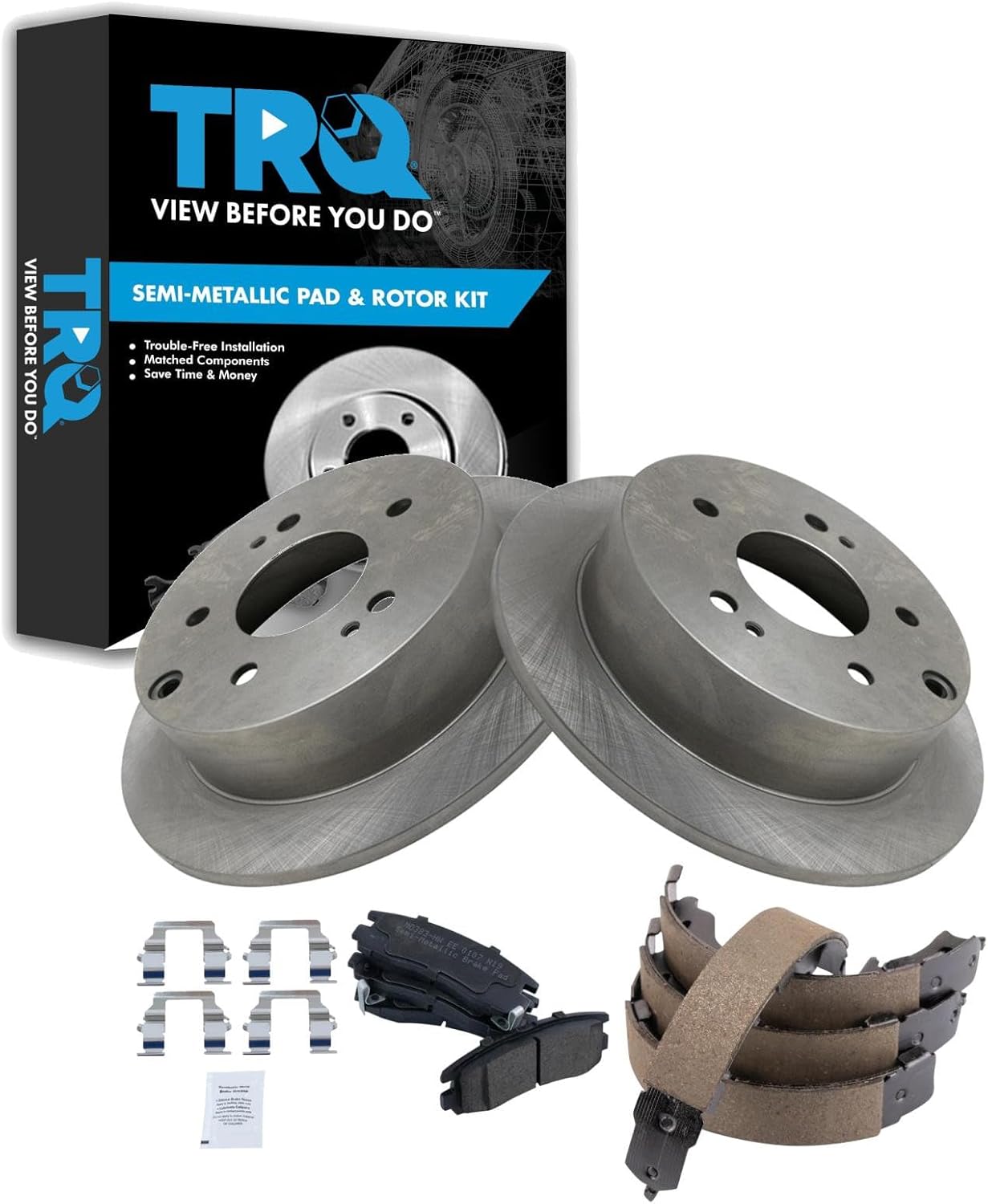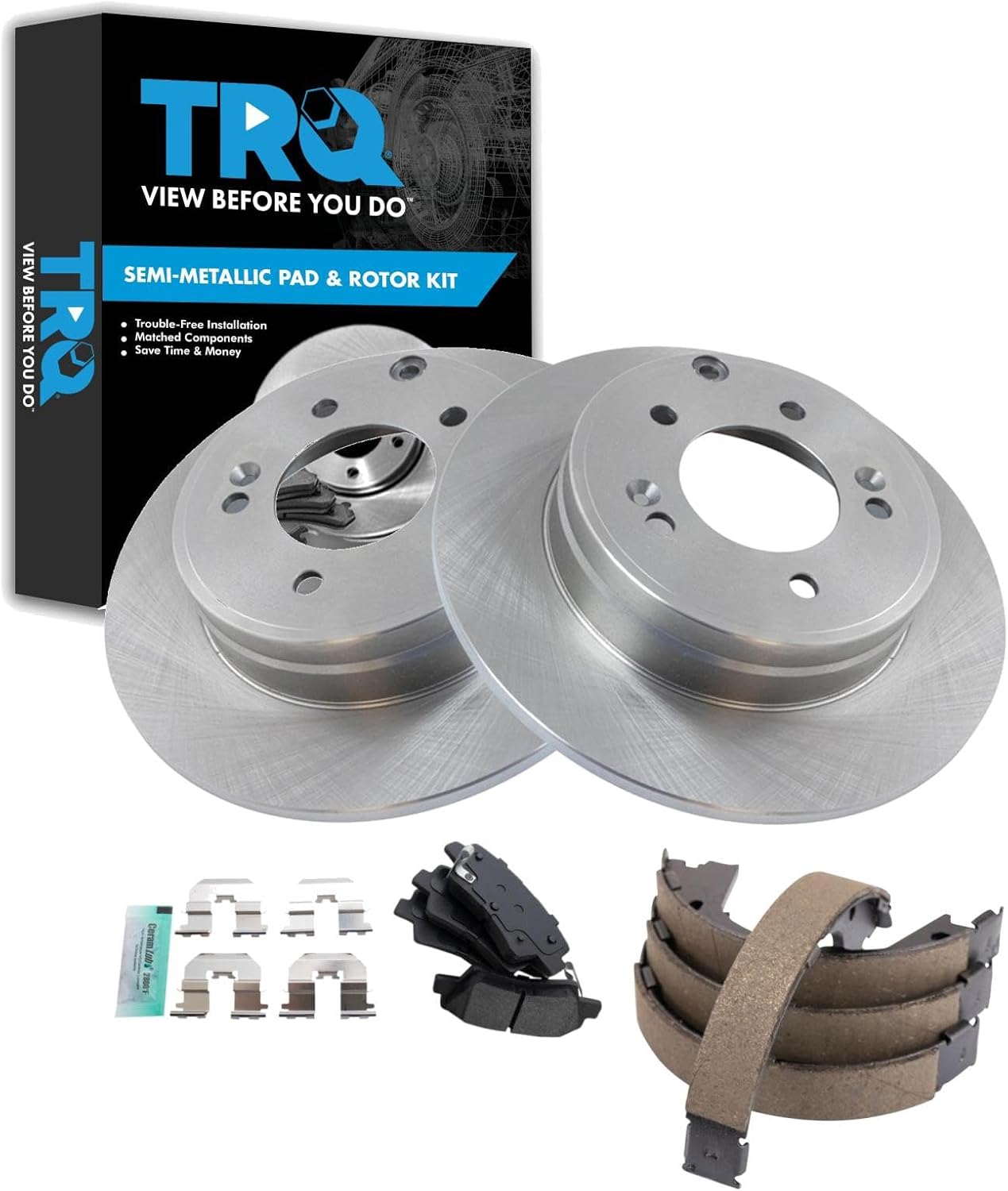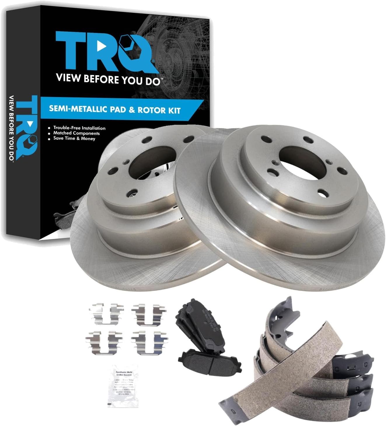 Semi-Metallic Brake Pad & Rotor KitKit Includes(1) Rear Parking Brake Shoe Set(1) Rear Semi-Metallic Brake Pad Set(2) Rear Brake RotorsFitmentMercedes Benz 220 1968-73 - Rear Rear Disc BrakesMercedes Benz 230 1974 - Rear Rear Disc BrakesMercedes Benz 240D 1974 - Rear Rear Disc Brakes 1975-83 - RearMercedes Benz 250 1968-72 - Rear Rear Disc BrakesMercedes Benz 280 1973-74 - Rear Rear Disc Brakes 1975-76 - RearMercedes Benz 280C 1973-74 - Rear Rear Disc Brakes 1975-76 - RearMercedes Benz 280CE 1978-81 - RearMercedes Benz 280E 1977-81 - RearMercedes Benz 280S 1975-76 - RearMercedes Benz 280SE 1973 - Rear Rear Disc Brakes 1977-80 - RearMercedes Benz 300CD 1978-84 - Rear 1985 - To 4/30/85 Production Date RearMercedes Benz 300D 1975-84 - Rear 1985 - To 4/30/85 Production Date RearMercedes Benz 300SD 1985 - RearMercedes Benz 300SDL 1986-87 - RearMercedes Benz 300SE 1988-90 - Rear without Acceleration Slip Regulation (ASR) 1991 - To 3/31/91 Production Date Rear without Acceleration Slip Regulation (ASR)Mercedes Benz 300SEL 1988-91 - Rear without Acceleration Slip Regulation (ASR)Mercedes Benz 300TD 1985 - To 4/30/85 Production Date RearMercedes Benz 350SD 1991 - RearMercedes Benz 350SDL 1990-91 - RearMercedes Benz 380SE 1984-85 - RearMercedes Benz 380SEC 1982-83 - RearMercedes Benz 380SEL 1981-83 - RearMercedes Benz 380SL 1982-85 - RearMercedes Benz 420SEL 1990-91 - Rear without Acceleration Slip Regulation (ASR)Mercedes Benz 450SE 1973-74 - Rear Rear Disc Brakes 1975-76 - RearMercedes Benz 450SEL 1973-74 - Rear Rear Disc Brakes 1975-76 - Rear 1977-79 - Base Model Rear 1980 - RearMercedes Benz 450SL 1973-74 - Rear Rear Disc Brakes 1975-80 - RearMercedes Benz 450SLC 1973-74 - Rear Rear Disc Brakes 1975-80 - RearMercedes Benz 500SEC 1984-85 - RearMercedes Benz 500SEL 1985 - RearMercedes Benz 560SEC 1986-91 - Rear without Acceleration Slip Regulation (ASR)Mercedes Benz 560SEL 1986-91 - Rear without Acceleration Slip Regulation (ASR)Mercedes Benz 560SL 1986-89 - RearProduct AttributesFriction Material Composition: Semi-metallicBrake Pad Bonding Type: Premium PosiBrake Pad Friction Material: Semi-MetallicProduct Features Positive Molded - Less dust resulting in clean wheels G3000 Casting Alloy - Reduced noise and improved wear resistance Application Specific Design - Extended service life, no modificationsItem DetailsTRQ brake kits are designed to restore your brake system to like-new performance. TRQ brake pads are positive molded, thermal scorched, chamfered, and utilize a multi-layer shim for enhanced performance and service life. TRQ rotors have a non-directional finish that reduces the break-in period for new rotors as well as reducing vibrations throughout the rotor’s lifecycle. All products are fit and road-tested in our Massachusetts R&D facility to ensure we deliver on our promise of Trusted Reliable Quality.Reference Numbers14200620270166227277402729119272944032034205820875PG99419941FZN9941P9941RBD61925BR3203PRT1448Z875