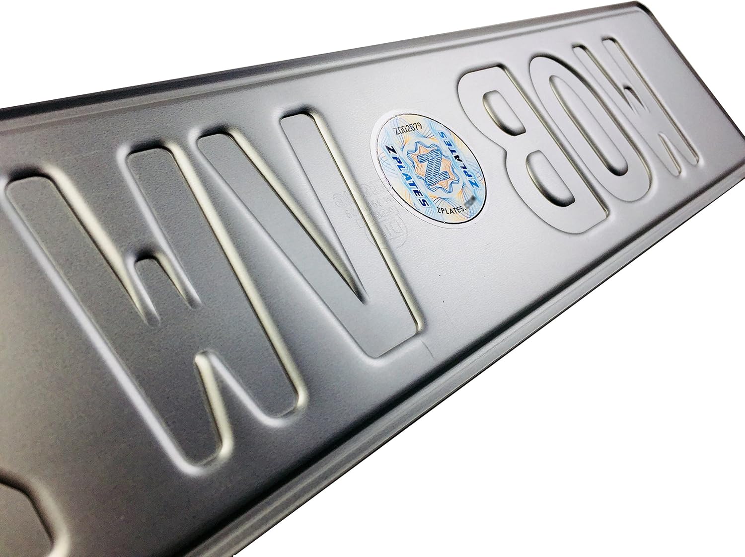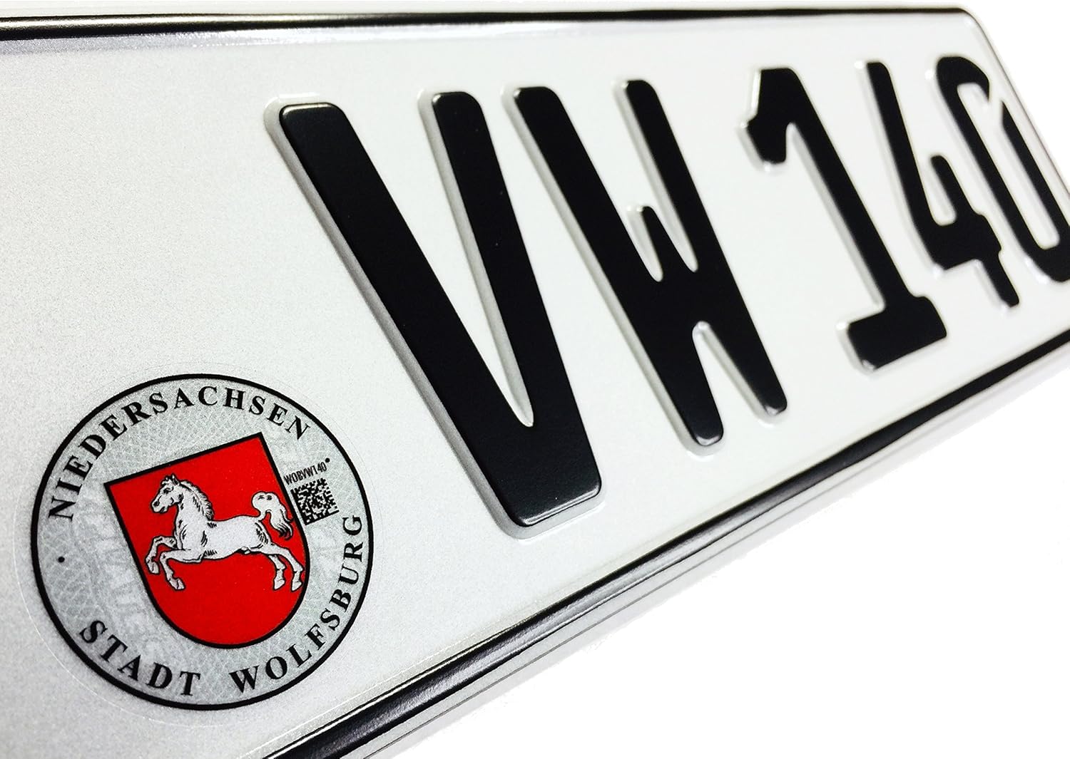 Wolfsburg Novelty German License Plate Features: ★ Embossed on 35-ton machine ★ Aluminum plate Replica Registration Sticker: Wolfsburg Unique number, one-of-a-kind 1440dpi for amazing detail Durable 2.5 mil vinyl Rated for 6+ years outdoors Waterproof Frame Specifications: Length: 20.63 inches Height: 5.18 inches Fits: Most vehicles 3 Locking tabs Keeps license plate securely in place Premium quality Made in Germany This item includes: 1 Wolfsburg Novelty German license plate Exclusive Z Plates Replica Wolfsburg Registration sticker on plate License Plate Frame This item includes: 1 Wolfsburg Novelty German license plate Exclusive Z Plates Replica Wolfsburg Registration sticker on plate Z Plates is the premier manufacturer of novelty license plates. All plates are manufactured on European machines, with strict attention paid to the finest details. Our exclusive replica registration sticker is made on high-quality vinyl and will last for years without fading, peeling, or cracking. Printed at an astounding 1440dpi for superior quality. The city code (WOB) will be the same as pictured; only the last digits will be different. This ensures no duplicates are issued. The back of the license plate has a Z Plates product seal with a unique number.