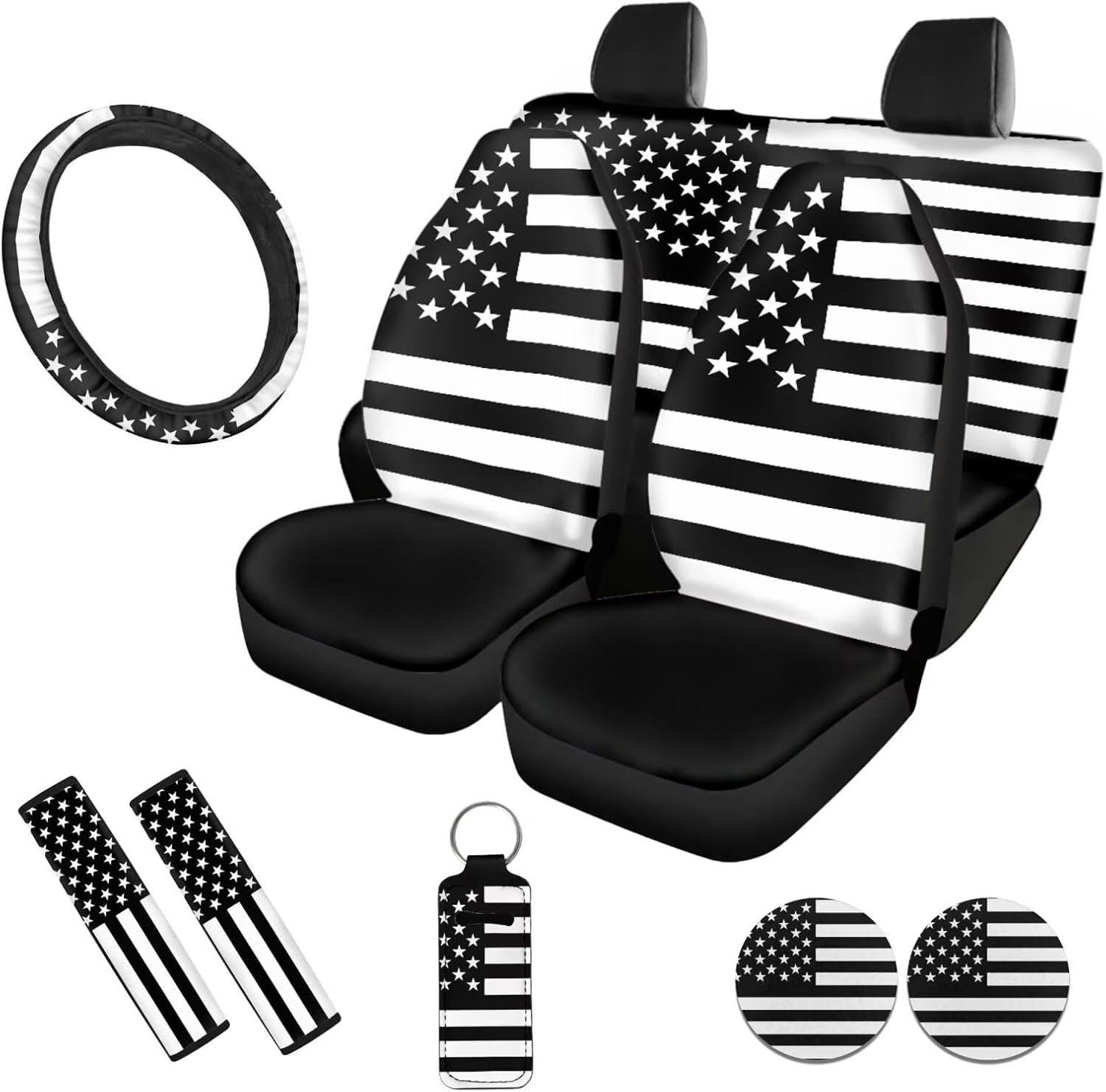 Welcome to HORESET Main Feature: 1.It universal application suit for most car,SUV,truck and van center consoles.It can keep your interior looking new, or even personalize your interior to suit your taste and interest. 2.Easy to clean and wash it. 3.Vivid 3D Technology,soft and comfortable neoprene. Note: 1.The color difference between the product and the picture is normal due to the difference of shooting light or the screen display. 2.Due to different methods of measure,the error is allowed normally within 1cm. Packing List: 2 * Automotive front seat covers 1 * Steering Wheel Cover 2 * Car Seat Belt Pads Cover 1 * Lipstick Holder 2 * Car cup coaster