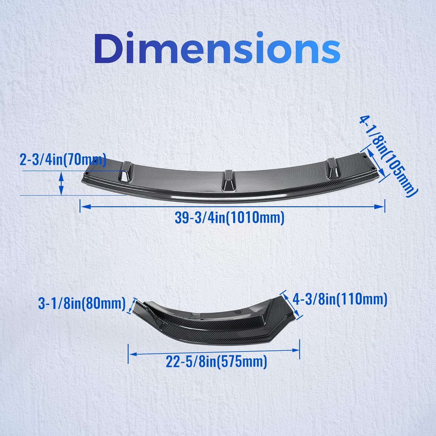 | Included Components | 1 x 3-Piece Front Bumper Lip (Carbon Fiber Style), Hardware and Instructions |