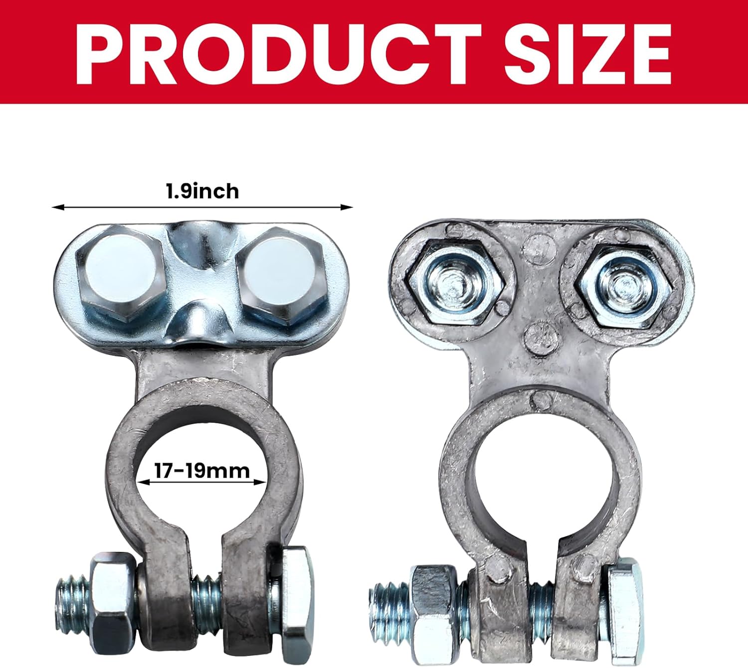 Features: Professional and stability: Battery terminals without acid leaks and corrosion while stabilizing current flow. Engineered for users who frequently replace batteries, they maintain secure connections whether the battery is active or idle. Wide compatibility for multiple applications: Works with cars, trucks, RVs, boats, ATVs, and more. Ideal for most standard cylindrical battery posts. Whether for automotive, marine, or off road use, these terminals deliver strong, reliable performance in any condition. Specifications: Material: lead Color: metallic color Size: 2.13 x 1.46 x 0.46 inches/ 5.4 x 3.7 x 1.16 cm Package includes: 20 x Connectors Clamps Notes: Manual measurement, please allow slight errors on size. The color may exist a slight difference due to different screen displays.