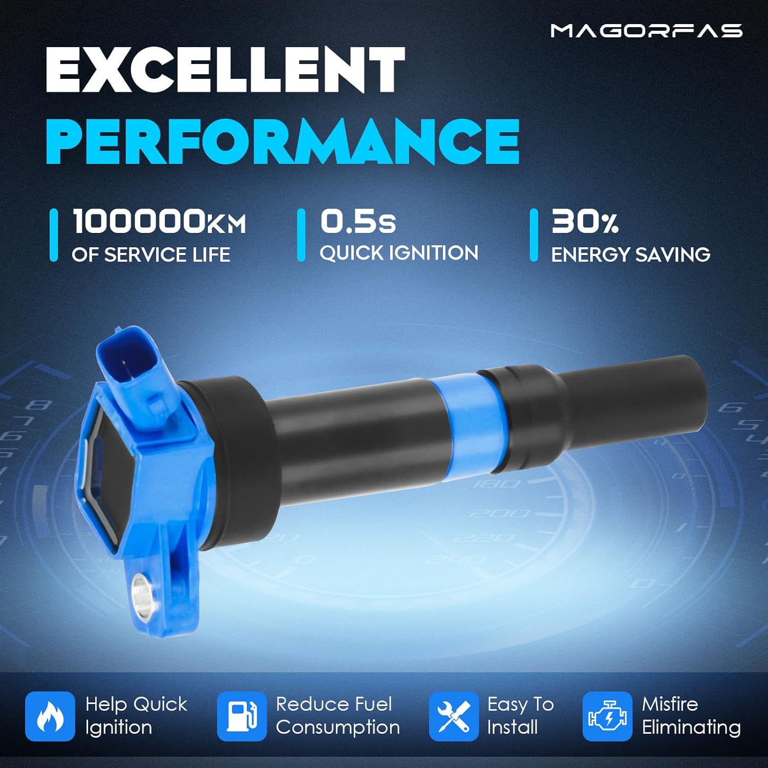 Magorfas Ignition Coils--No more stuttering, and quicker start off!100000km of service life0.5s quick ignition30% energy savingCompatible with Hyundai:2011-2016 Fit for Elantra 1.8L L42014 Fit for Elantra 2.0L L42013 Fit for Elantra GT 1.8L L42018-2020 Fit for Elantra GT 2.0L L42014-2017 Fit for Tucson 2.0L L4Compatible with Kia:2014-2016 Fit for Forte 1.8L L42014-2015 Fit for Forte 2.0L L42012-2015 Fit for Soul 2.0L L4Package Includes:4 * Blue Ignition CoilsReplaces for:UF-651, 27300-2E000, 273002E000, 27301-2E000, 273012E000, C1804, 5C186, 11788511, UF651All Magorfas products provide 12-month service.Please check your vehicle model according to the Amazon model list to avoid wrong purchases and returns. Remember to prevent putting the ignition coils in a hot or wet environment.