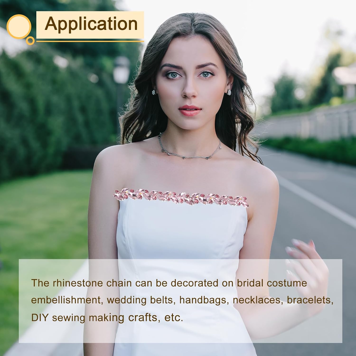 Why Choose Crystal Rhinestone Close Chain Trim Sew-On Chain Rhinestones for DIY Craft Garment Accessories?Our rhinestone chain is made of rhinestone material with clear crystal, strong and firm, thick silver electroplating, and not easy to fade, long service life.Crystal rhinestone diamond chain is designed in simple but elegant colors, easy for you to match with other items, and easy to attract people's attention. The rhinestone chain can be decorated on bridal costume embellishment, wedding belts, handbags, necklaces, bracelets, DIY sewing making crafts, etc.The length of this trim can be changed with regular scissors. The length is enough to meet your daily decoration needs.A great gift to your friend, colleague, relative, lover, and neighbor, give them leave a good impression.Specification:Material: rhinestoneColor: PinkSize: 35.4"(L) x 0.5"(W)/ 90 cm x 1.4 cmUse: Garments, Shoes,Bags, box (anything that you want to decorate)Package Included: 1 x crystal rhinestone chain