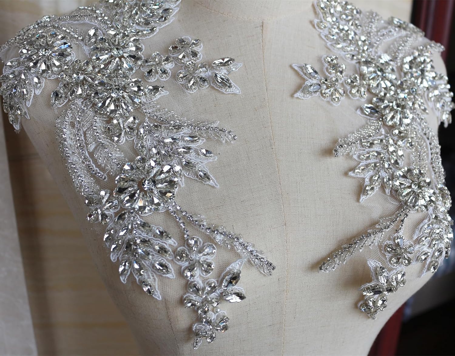 High quality crystal rhinestones, rhinestones and beads are all hand-stitched. Perfect bridal sash, belt, wedding accessories, bridal dress, party dress Package including mirror pair silver applique