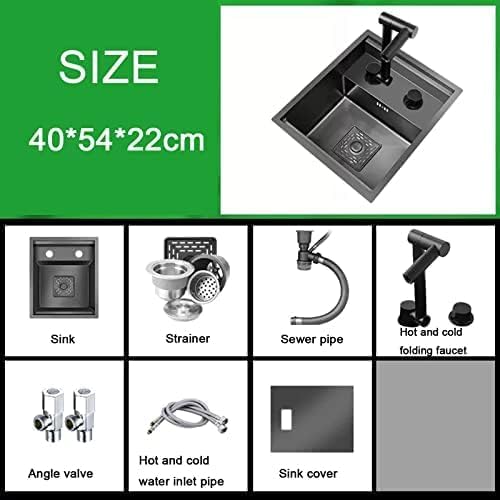 This kitchen sink is designed to meet your daily needs with its durable stainless steel construction and sleek black color. Available in multiple sizes to fit various spaces: 32*39*22cm (12.5*15.3*8.6 inches), 42*43*22cm (16.5*16.9*8.6 inches), 40*44*22cm (15.7*17.3*8.6 inches), and 40*54*22cm (15.7*21.2*8.6 inches). Please note, this listing is for the sink and its accessories only. Slight variations in size (1~2cm) and color may occur due to manufacturing and photography differences. We are committed to providing excellent customer service and will respond to all inquiries within one business day. If you do not receive a response, please resend your email for prompt assistance.