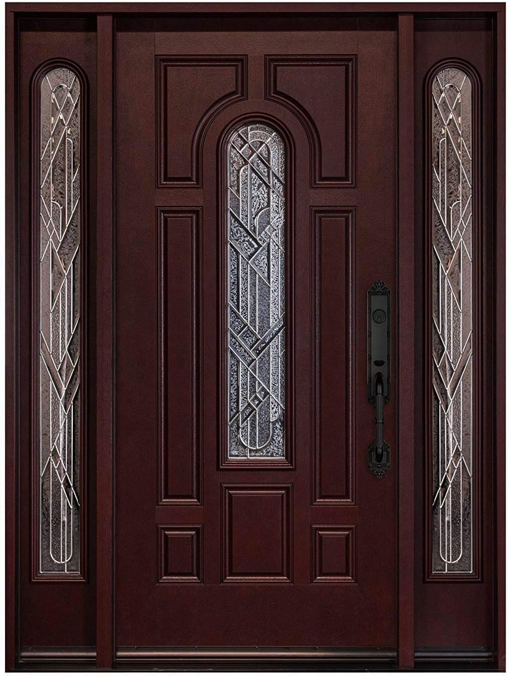 WELCOME DOOR MAJOR Our Front Exterior Door are made of durable fiberglass, have beautiful triple glass with silver caming. Fiberglass-composite doors are tough and maintenance-free, and are a smart choice for harsh or humid climates.They mimic the look of wood with wood-grain texturing and can be stained dark mahogany Features - Material: Fiberglass - Finish: dark mahogany - Glass: Triple glaze glass with silver caming - Moulding: Brick mold and casing - Unit comes with door jambs,aluminum sill and door shoes,ball bearing hinges & Q-Lon weatherstripping(double wood will have wood T-astragal) - Two standard bore on both doors for tubular latch entry handle set - Door handle lock set are not included - Prefinished How to Select a New Front Door ? 1.Measure the dimensions for your new door. If you’re replacing your old front door with a NEW door, then measure the length, width, and depth of your current door jamb with a reliable tape measure. If you’re replacing the door and are installing it in the existing door jamb, then measure the length, width, and depth of the old door. 2.Choosing the Material Fiberglass-composite doors are tough and maintenance-free, and are a smart choice for harsh or humid climates. 3.Choosing the design and style 4.Choose if you want your door to swing open to the left or right. 5.Purchasing your door now! Any question, please feel free to contact us :)