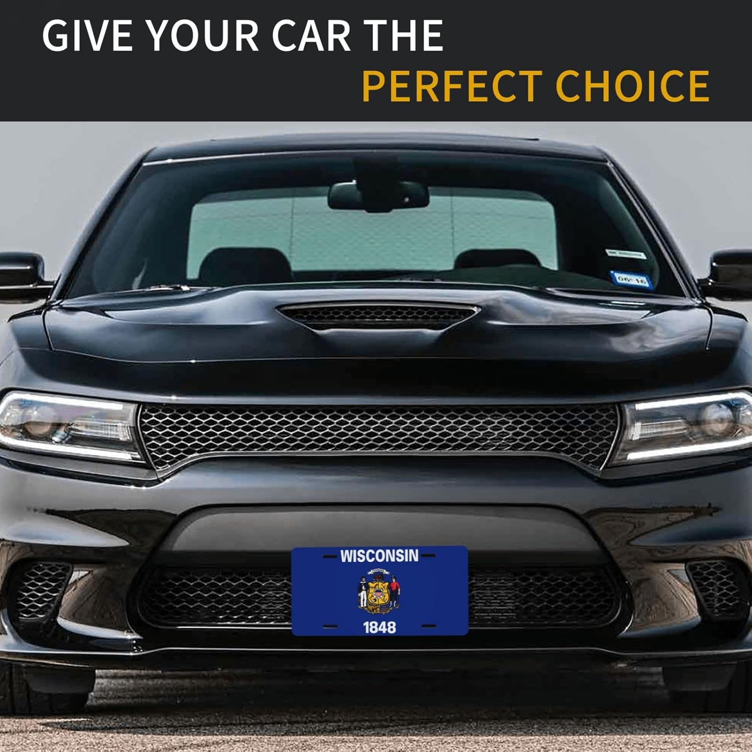 Wisconsin State Flag This license plate features a full-width, single-sided printed design, creating an eye-catching visual effect and instantly elevating the overall style of your vehicle. Whether you drive a sedan, truck, or van, this license plate will make your car stand out in traffic, showcasing your unique taste and personality. It's more than just a license plate; it's a stylish accessory that enhances your vehicle's appearance. Made of aluminum, the license plate is lightweight yet sturdy, able to withstand daily wear and tear and harsh weather conditions. It is resistant to rust, fading, or deformation, ensuring long-lasting use and maintaining its stylish look. We understand the importance of convenience, so this license plate is designed for easy installation. No complicated tools or professional skills are required; you can easily install it on your vehicle in just a few minutes. Furthermore, the smooth aluminum surface is extremely easy to clean; simply wipe it with a damp cloth to restore its shine, saving time and effort.