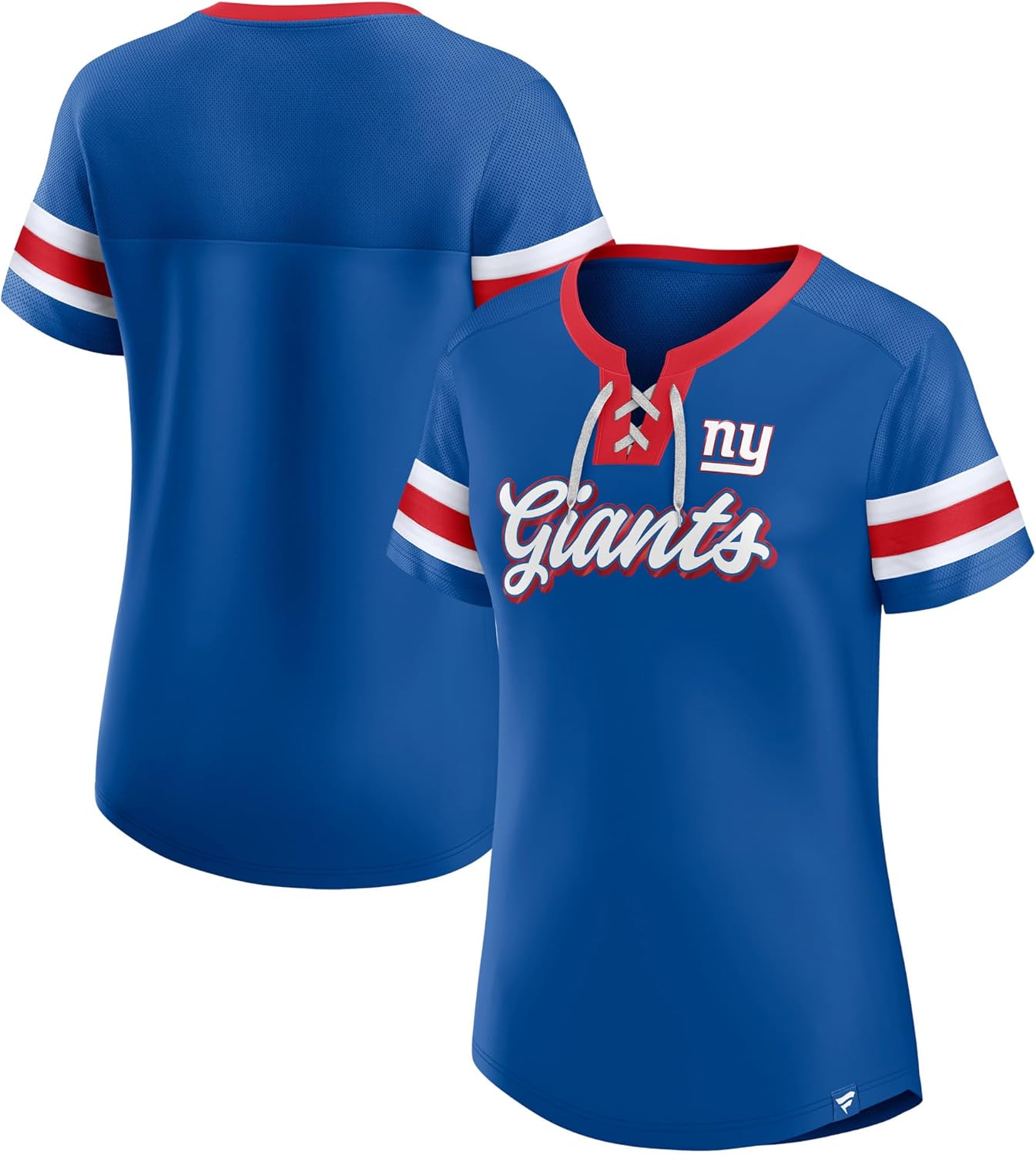 Show off your team pride with a touch of vintage flair in this Original State Lace-Up T-Shirt from Fanatics. The mesh sleeves and back panel offer breathability, ensuring you stay cool and comfortable whether you're cheering from the stands or tailgating before the game. Plus, the eye-catching lace-up neckline and screen print graphics add a touch of edgy style to this Jets tee.