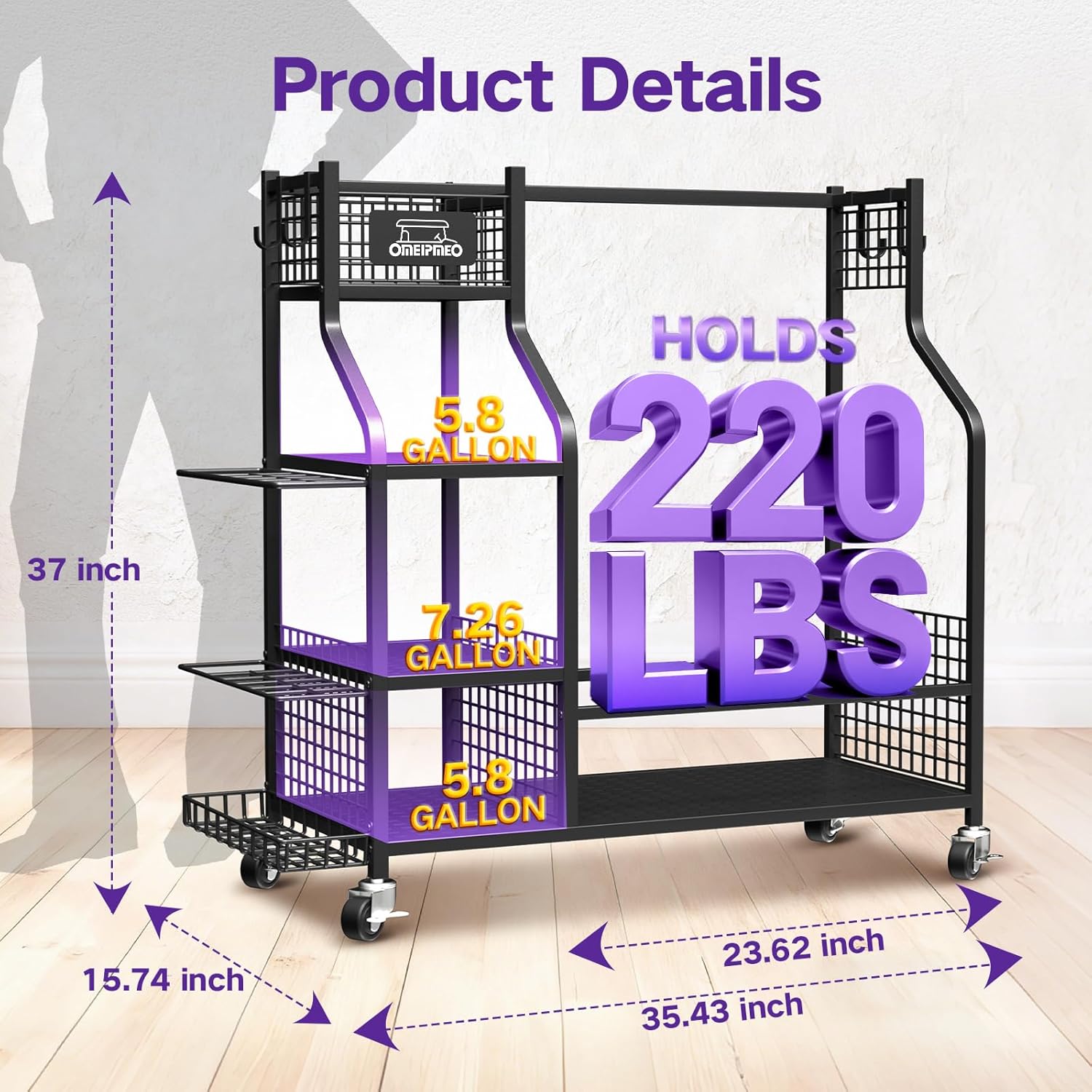 | Included Components | 4pcs Casters, Golf Bag Storage Rack, Hardware Kit |