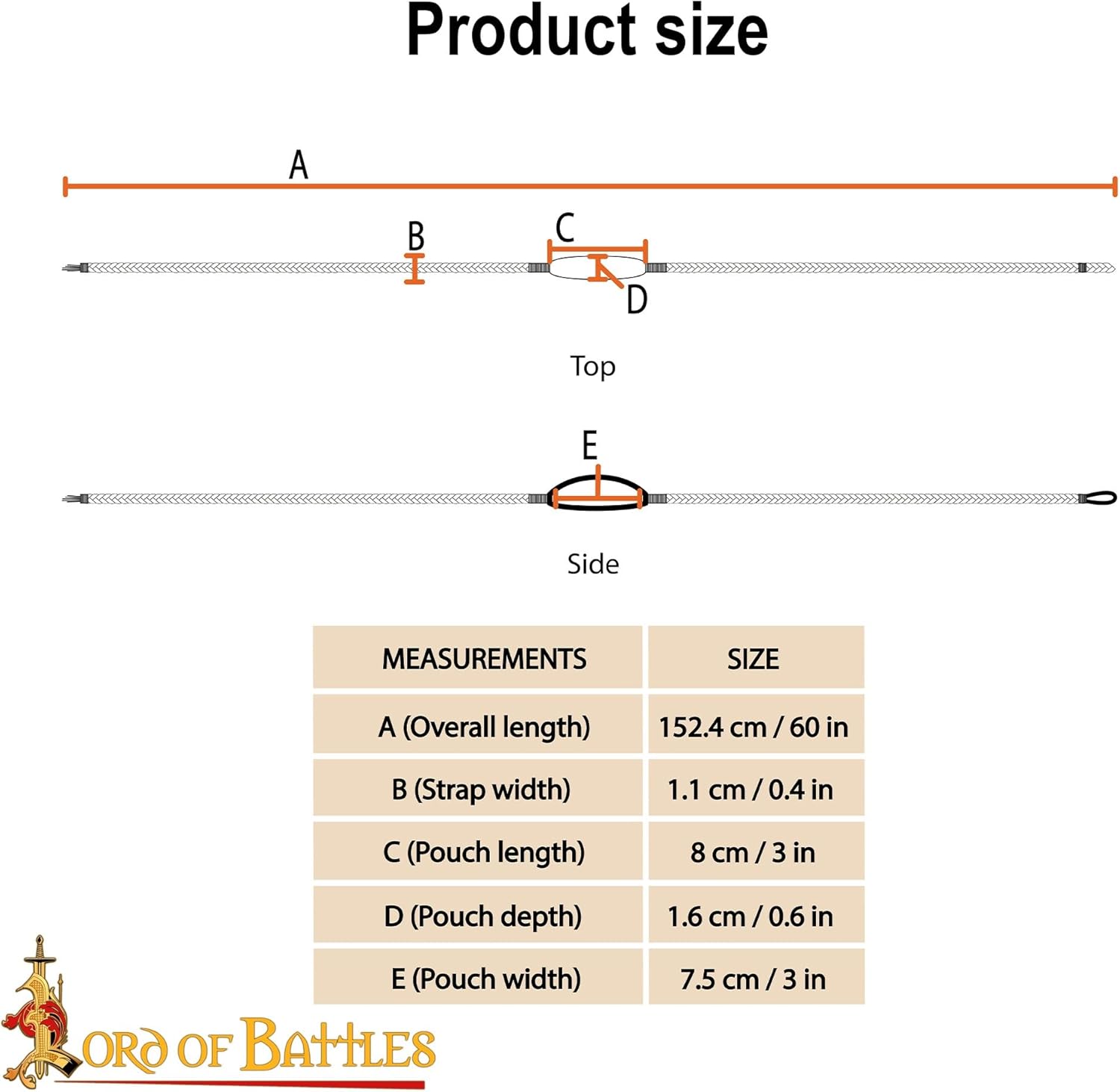 You are a true sharpshooter, perhaps even a Balearic mercenary of Hannibal's or Julius Caesar's armies. You know how to craft a genuine slingshot and launch a perfect projectile with this meticulously handcrafted balearic jute cord sling! Fun fact: Did you know that Balearic slingers carried three slings of varying lengths, strategically positioned on their bodies? This enabled them to launch deadly projectiles at varying distances, adapting to the ever-changing conditions of the battlefield. One sling was securely fastened to their head, another was belted around their waist, while a third remained firmly gripped in their hand. This clever arrangement allowed them to rain down a barrage of stone and lead-ball projectiles with deadly accuracy and speed upon the enemy from afar! With this sling in hand, you can be confident that every shot mirrors the deadly accuracy achieved by the renowned Balearic slingers of Hannibal’s dreaded army or the Rhodian slingers in Alexander the Great’s legendary forces! At Lord of Battles, we are genuinely committed to offering nothing but the best to our clients. Every item is unique and is purely handcrafted. The highest possible standards are maintained by using the best quality materials. Innovation and creativity are the hallmarks of our company yet we stay true to history. Every article is obtained keeping ethics in mind and conserving the environment. Stand out at your epic historical event, at a wedding, cosplay, or a LARP event. Outshine the rest, with our super quality products made out of authentic materials and proudly relive history. We promise, you will be the star of the medieval event Feel the true Lord of Battles, the most epic character, or simply a ruffian with our products you can be the character that the event requires. ...