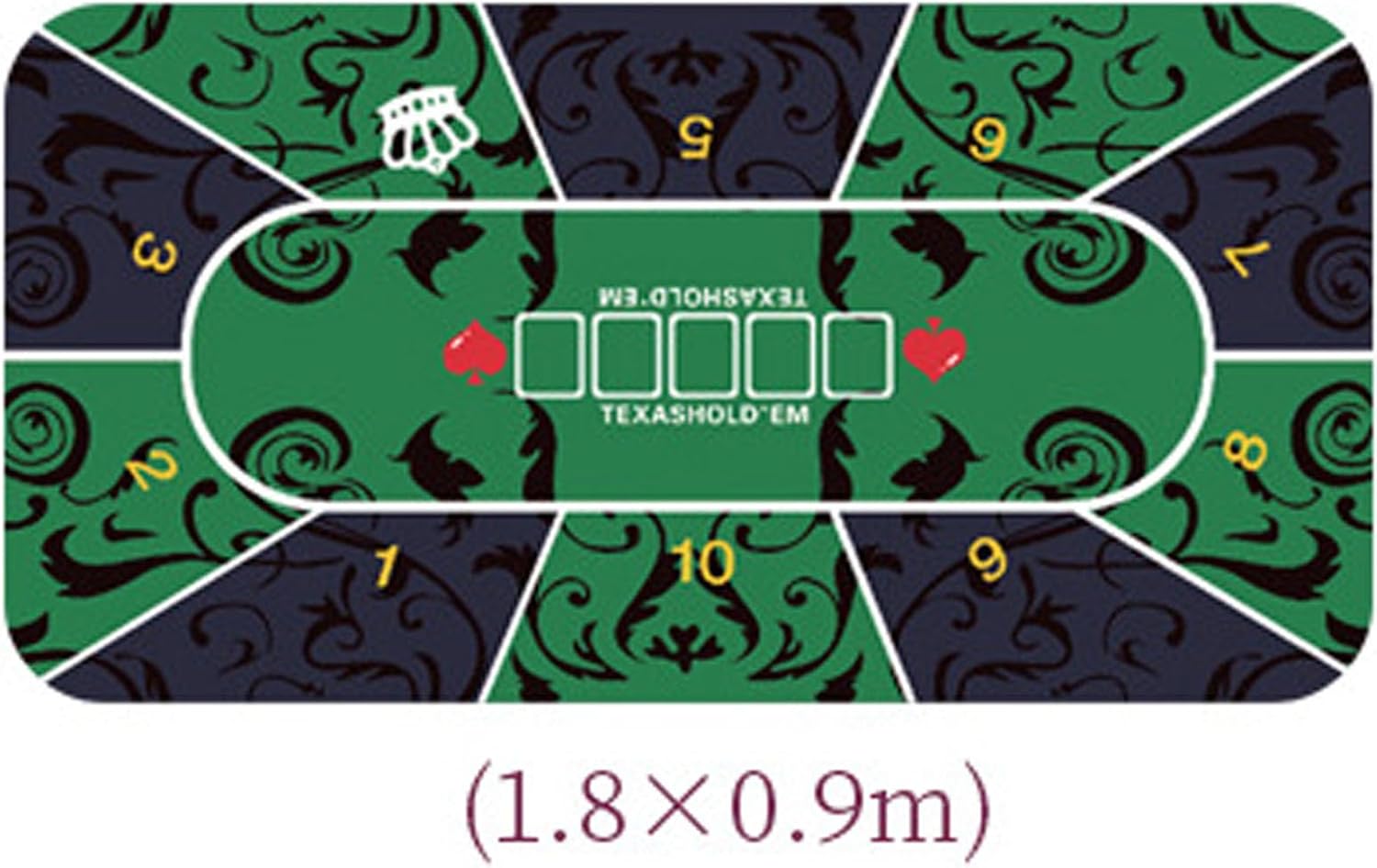 Product parameters Product name: Texas Hold'em poker table mat Product size:90*180CM Product thickness: 2MM Product material: Jiaji cloth + natural rubber Cleaning method: supports machine washing and water washing, avoid exposure to sunlight Packing list Texas Hold'em table mat*1