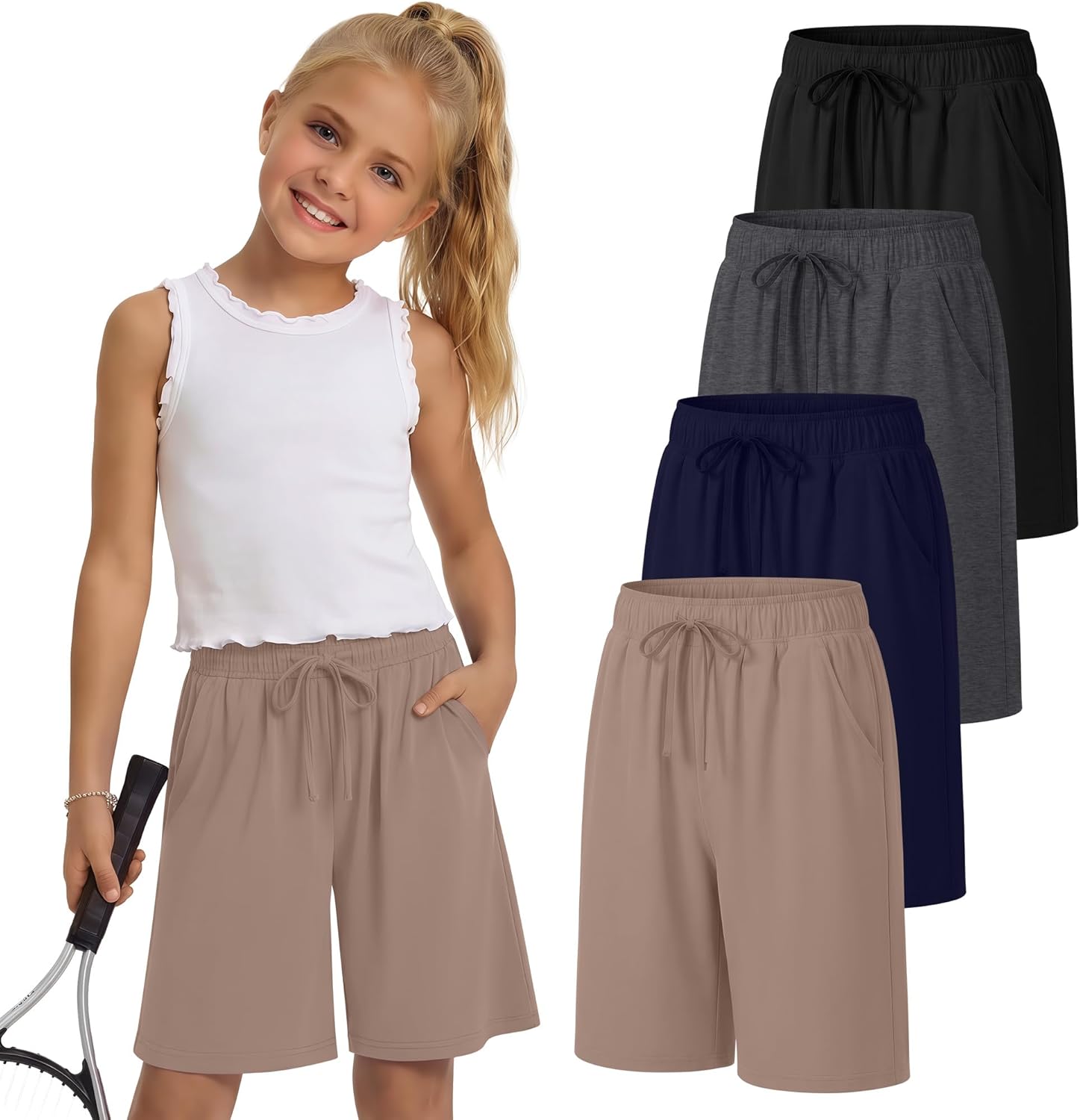 Features: Solid Color Style: The girls' bermuda shorts is a classic solid color design that is both casual and practical, making it a proper choice for everyday wear. Easy Clean: Machine or hand washable, hang or line dry, no bleach, no dry clean, Iron on low heat. Specifications: Material: 60% Polyester, 35% Rayon, 5% Spandex Package Includes: 4 x Kids' drawstring culottes with pockets Notes: Manual measurement, please allow slight errors on size. The color may exist a slight difference due to different screen displays
