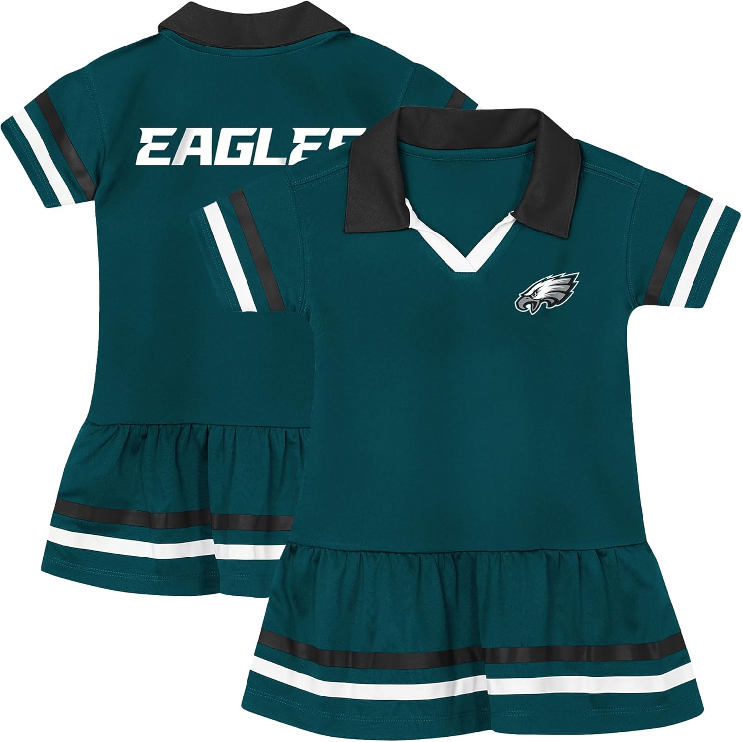 Start your little one's team fandom off strong with this Outerstuff Star Player Dress. Designed with a fit-and-flare silhouette, it's perfect for twirling through game day and cheering on the team in style. A self-fabric stand-up collar and sporty sleeve and hem stripes add an athletic touch, while the team logo on the left chest and wordmark across the back proudly showcase her team pride. It's a touchdown-worthy addition to her game-day wardrobe.