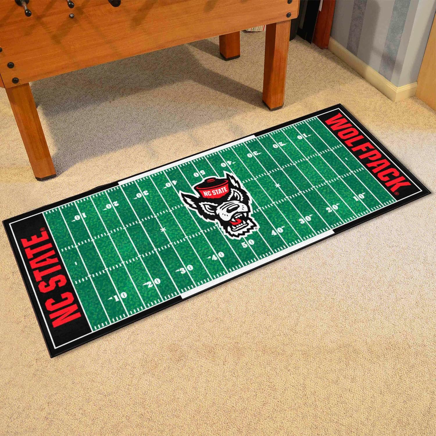 Are you a die-hard football fan that likes to show off your team pride then football field runner Rugs by sports licensing solutions were made for you. Yard lines and grass graphics make the runner look like a Real football field. Made in the U.S.A. With 100% nylon carpet and non-skid recycled vinyl backing. Officially licensed and chromojet printed in true team colors.
