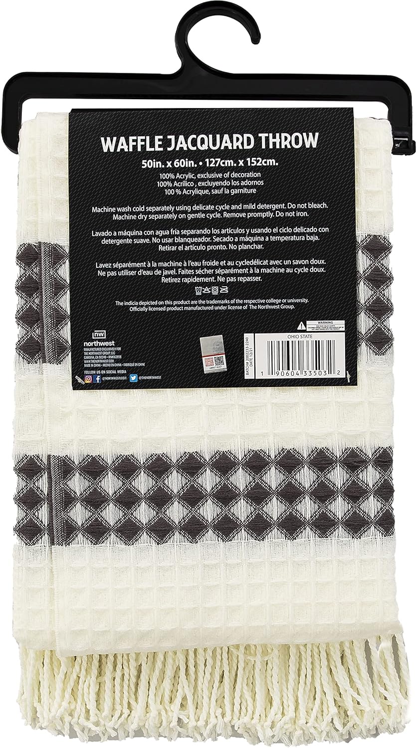 Warm up the ambiance of your home with the style and coziness of an Officially Licensed NCAA Waffle Weave Jacquard Throw Blanket by TheNorthwest. Keep this two-toned throw is the perfect extra layer for any bed or couch.