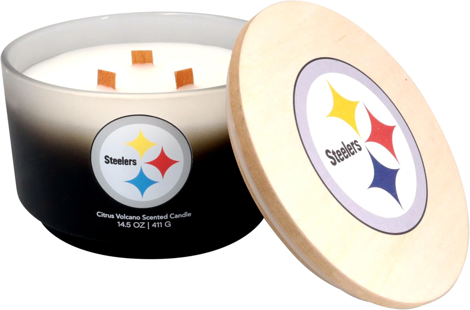 Bring your team pride into any room with the Pegasus Sports NFL 14.5oz Gradient Glass Candle — a modern take on fan décor with a premium look and feel. Housed in a stylish gradient glass jar and topped with a real wood lid printed with your favorite NFL team’s logo, this officially licensed candle delivers subtle sophistication while repping your squad. The 14.5oz premium scented wax offers a long-lasting, clean burn and a warm, inviting fragrance perfect for relaxing on a Sunday or hosting game night. Once the candle has burned through, the reusable jar and wood lid make a perfect display piece or storage container. Modern. Functional. Fan-forward. Light up your space with team pride.