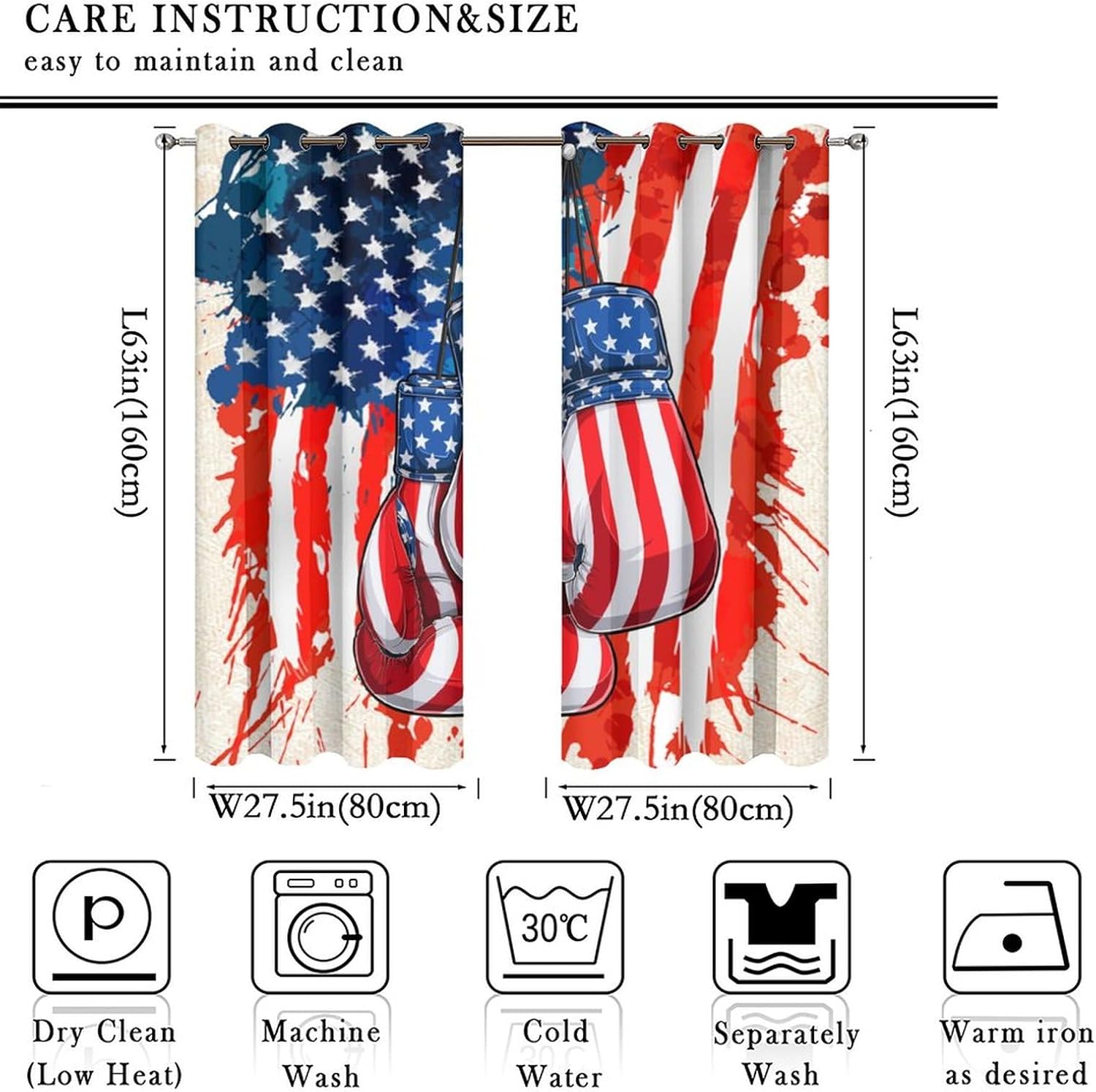 brebasf Abstract Sports Theme Boxing Patterned Blackout Curtains Comes in eight sizes: Total size: 45" L × 42" W (114cm × 107cm),Includes two pieces, each of which measures:45" length × 21" width (114cm × 53.5cm). Total size: 54" L × 42" W (137cm × 107cm),Includes two pieces, each of which measures:54" length × 21" width (68.5cm × 53.5cm). Total size: 63" L × 42" W (160cm × 107cm),Includes two pieces, each of which measures:63" length × 21" width (160cm × 53.5cm). Total size: 63" L × 55" W (160cm × 140cm),Includes two pieces, each of which measures:63" length × 27.5" width (160cm × 70cm). Total size: 63" L × 63" W (160cm × 160cm),Includes two pieces, each of which measures:63" length × 31.5" width (160cm × 80cm). Total size: 72" L × 63" W (183cm × 160cm),Includes two pieces, each of which measures:72" length × 31.5" width (183cm × 80cm). Total size: 63" L × 72" W (160cm × 183cm),Includes two pieces, each of which measures:63" length × 36" width (160cm × 91.5cm). Total size: 84" L × 84" W (214cm × 214cm),Includes two pieces, each of which measures:84" length × 42" width (214cm × 107cm). This Vintage Fighting Match Boxing Gloves American Flag Curtains liven up your indoor or outdoor spaces with a sense of airiness and beauty.Function: 1. Made of durable polyester fiber,soft and light. 2 The package includes: 2 panels. Curtain material: 98% polyester fiber. Provide a beautiful appearance for your bedroom,living room or office. 3. The curtains are grommet,which can be used with any standard curtain rods. Our products can be used as living room,room curtains. Mother's Day,Christmas,Halloween,Thanksgiving,New Year's party decorations at home! We believe that you will like this curtain as much as we do. If you are not satisfied with our products,please contact us,we will solve any problems encountered by the products for you,so that you are satisf