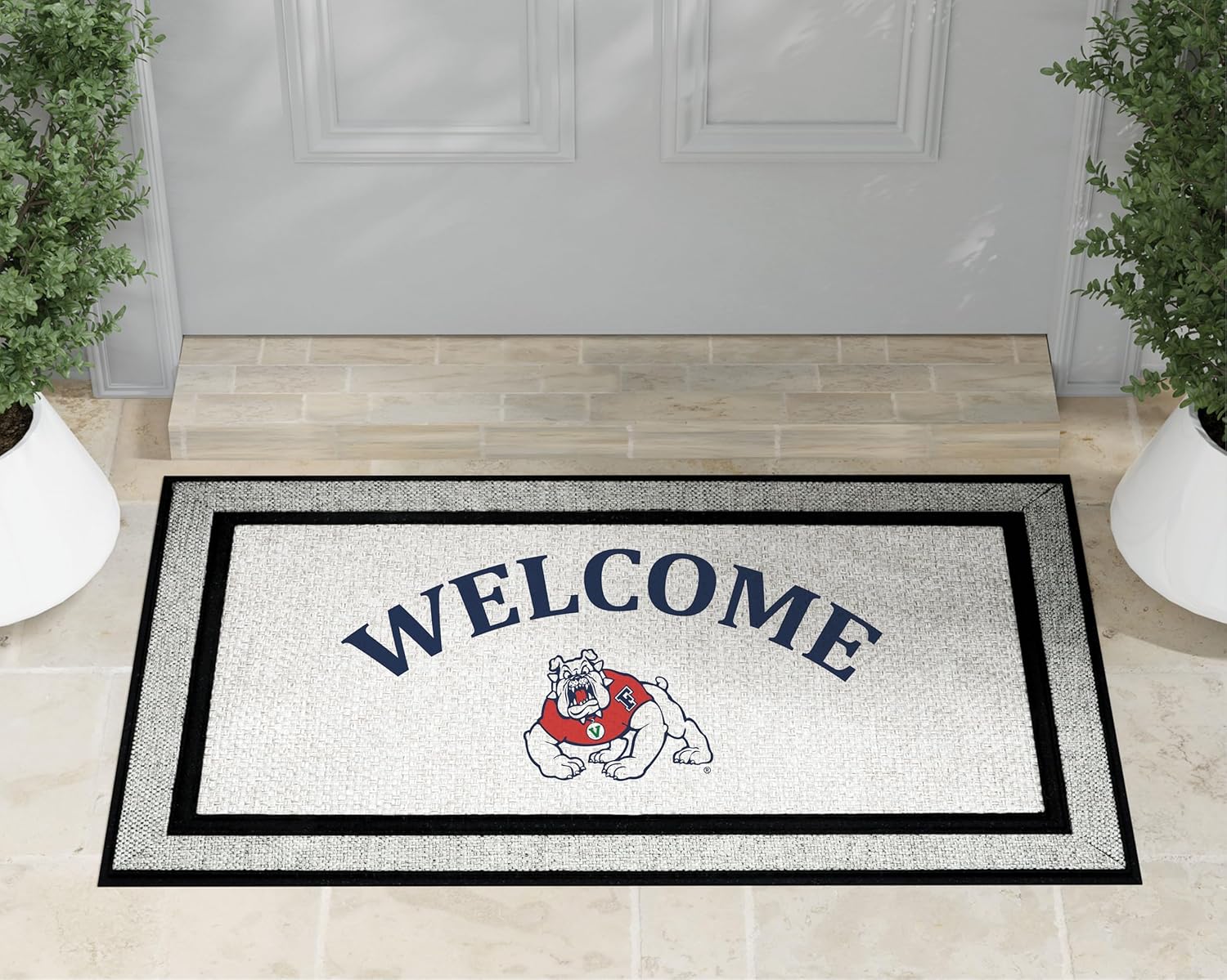 Welcome guests with this officially licensed Fresno State Bulldogs Welcome Doormat. Featuring a bold “WELCOME” across the top along with the iconic Fresno logo, this doormat is set on a stylish two-tone neutral gray background that complements any entryway. Designed for both indoor and outdoor use, it’s made with weather-resistant, fade-resistant materials that stand up to the elements season after season. The non-slip backing is crafted from recycled rubber tires, helping to keep the mat firmly in place while offering an eco-friendly touch. This Bulldogs doormat is the perfect way to show your team spirit right at the door. KH Sports Fan offers a huge selection of officially licensed NCAA products, which includes Fresno memorabilia. KH Sports Fan is the perfect place to shop for Fresno State Bulldogs gifts, collectibles, and Bulldogs decor to spruce up your fan cave, dorm, office, and home. We also offer an amazing selection of Fresno outdoor decor which is perfect for entertaining your friends and family throughout every season. Make sure to check out our festive holiday collection which includes, Fresno Christmas tree ornaments, Bulldogs signs, and Christmas decor.