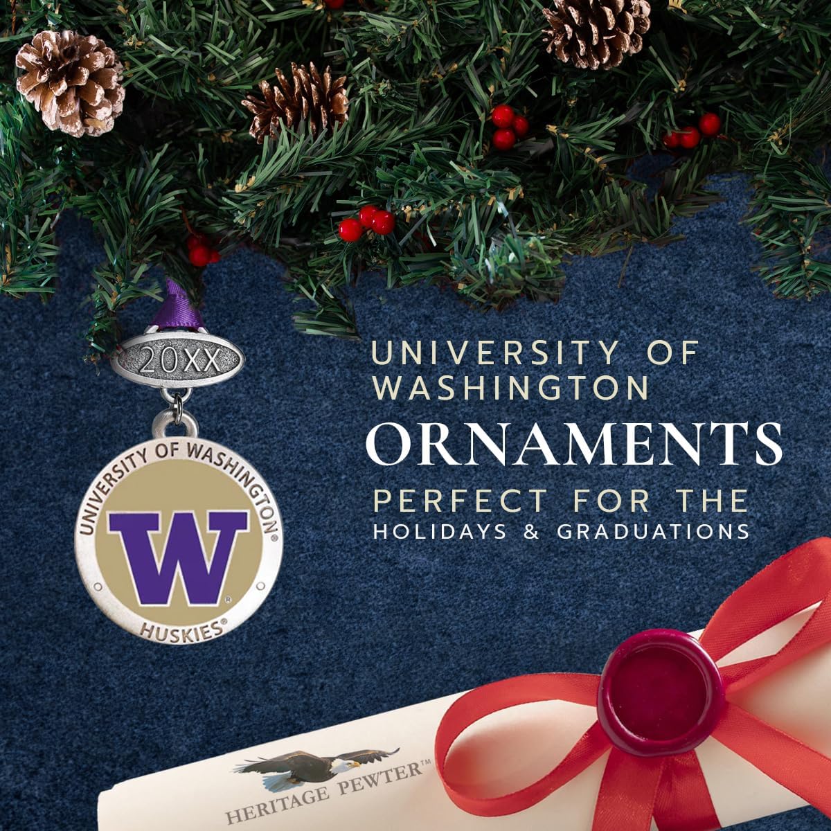 This hand-sculpted Fine Pewter Christmas ornament features intricate details on both sides. It comes with a satin ribbon, in a windowed, festive package that easily slips into a holiday card for easy mailing.