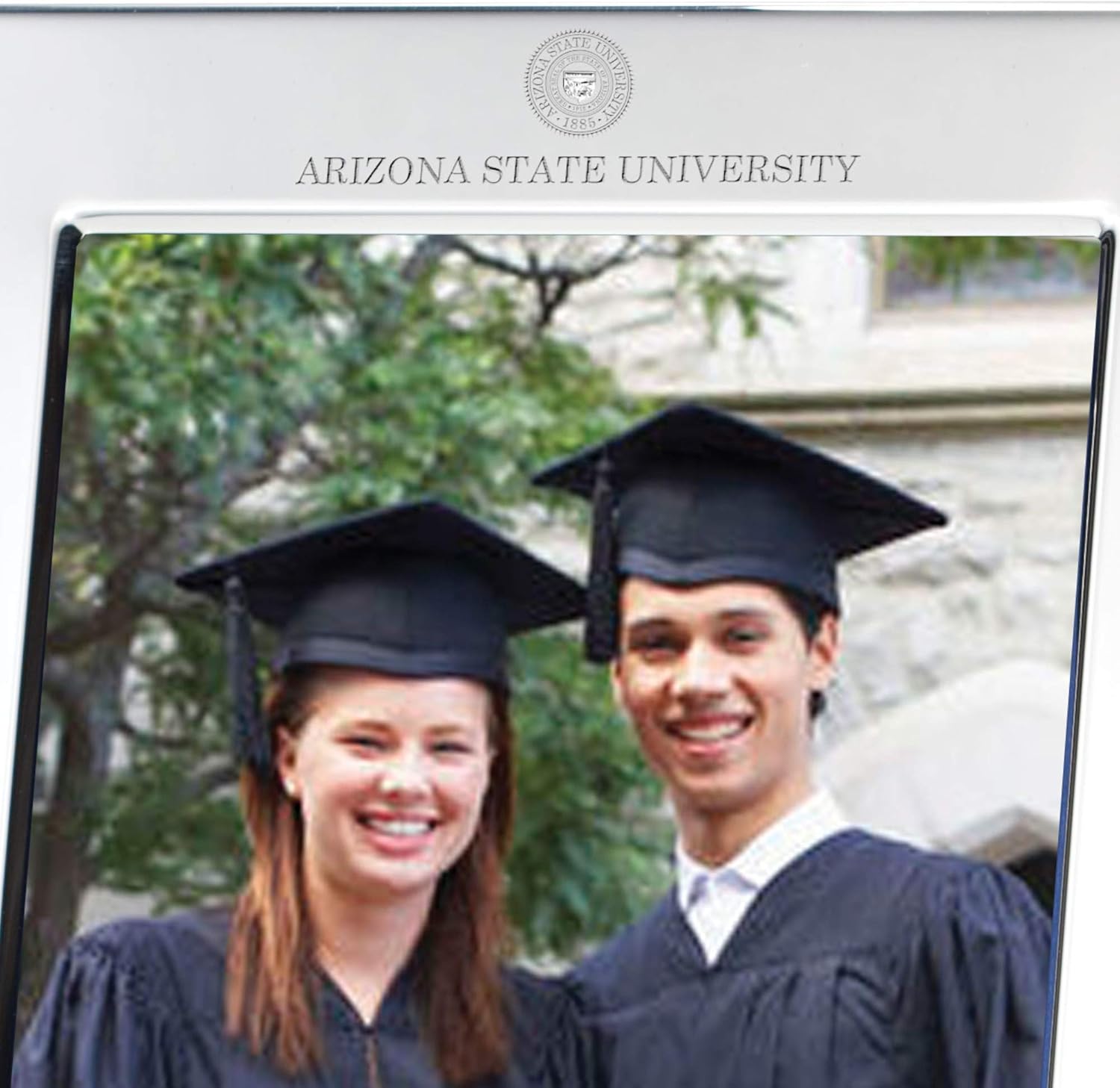Arizona State University pewter frame, handsomely engraved with “Arizona State University” and seal at top, generously accommodates your custom-engraved personal message. Officially licensed by Arizona State Sized for 5 x 7 photo, portrait or landscape orientation. Easel back. Crafted from solid pewter with high-polish finish. Presented in our attractive gift box. Combine with our pewter julep cup or other desk accessory for a unique graduation gift set. Arizona State Graduation Gift featured selection.