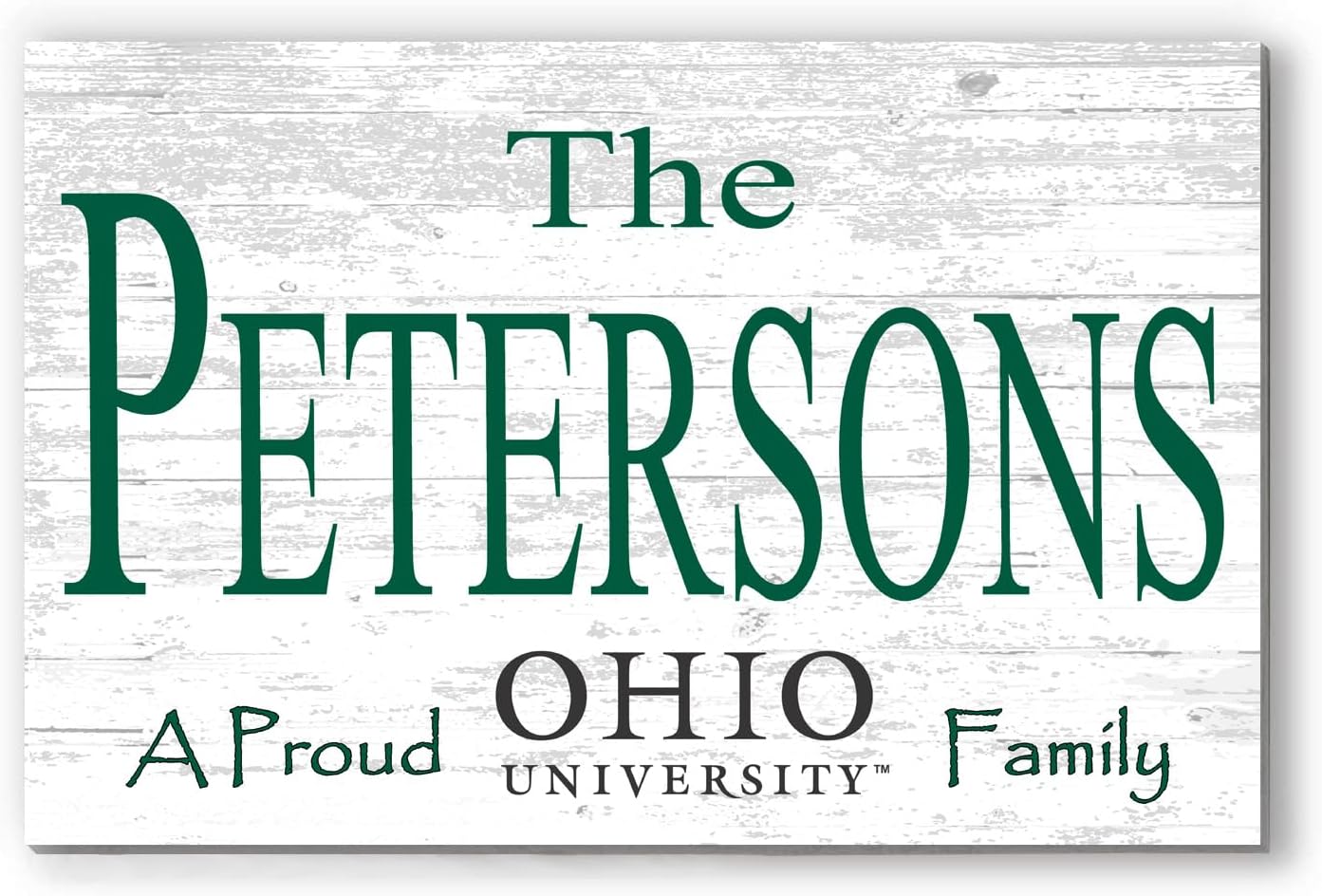 Ohio University Family Name Sign – Personalized Solid Wood Wall Display with Bobcats Logo – Graduation or Holiday Gift for Students, Alumni or Fans – 16.5” x 10.5” – Home or Office Decor 🐾 Celebrate your Bobcat pride with this personalized Ohio University family name sign, featuring your last name in bold script next to the official Ohio Bobcats logo, with “Ohio University” printed across the bottom. A timeless keepsake honoring your family’s legacy in Athens. Crafted from solid FSC-certified Chilean Radiata pine and printed using our premium Frescoprint process, your design is embedded into the wood grain for a richly textured, fade-resistant finish. At 16.5” x 10.5”, this piece fits beautifully in dorms, offices, entryways, or living spaces. 📏 Dimensions: 16.5” x 10.5” x 0.5” 🪵 Material: Solid FSC & PEFC Certified Chilean Radiata Pine 🖋️ Customization: Personalized with your family name 🐾 Official Ohio University Product – Up to 15% supports Bobcats programs 🇺🇸 Made in the USA from Chilean Radiata Pine – Printed & Assembled in Virginia 🇺🇸