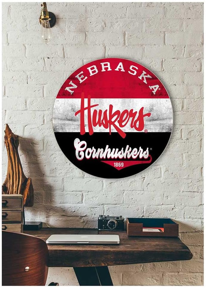 Let everyone know who you are cheering for on game day with this unique Nebraska Cornhuskers sign. With its retro vibe and bold style, this multi-colored circle sign is the perfect way to display your team spirit in any space. Hangs with a keyhole wall mount. MADE IN THE USA. KH Sports Fan offers a huge selection of officially licensed NCAA products, which include gifts and home decor. Our Cornhuskers merchandise makes the perfect gift for Mother's Day, Father's Day, Christmas, Graduation, Birthday, or to celebrate any special occasion that calls for Nebraska memorabilia. KH Sports Fan is the perfect place to shop for Nebraska gifts, collectibles, and Cornhuskers decor to spruce up your fan cave, dorm, office, and home. We also offer an amazing selection of Nebraska outdoor decor which is perfect for entertaining your friends and family throughout every season. Make sure to check out our festive holiday collection which includes, Nebraska Christmas tree ornaments, Cornhuskers doormats, and Christmas decor.