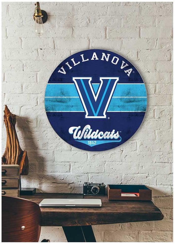 Let everyone know who you are cheering for on game day with this unique Villanova Wildcats sign. With its retro vibe and bold style, this multi-colored circle sign is the perfect way to display your team spirit in any space. Hangs with a keyhole wall mount. MADE IN THE USA. KH Sports Fan offers a huge selection of officially licensed NCAA products, which include gifts and home decor. Our Wildcats merchandise makes the perfect gift for Mother's Day, Father's Day, Christmas, Graduation, Birthday, or to celebrate any special occasion that calls for Villanova memorabilia. KH Sports Fan is the perfect place to shop for Villanova gifts, collectibles, and Wildcats decor to spruce up your fan cave, dorm, office, and home. We also offer an amazing selection of Villanova outdoor decor which is perfect for entertaining your friends and family throughout every season. Make sure to check out our festive holiday collection which includes, Villanova Christmas tree ornaments, Wildcats doormats, and Christmas decor.