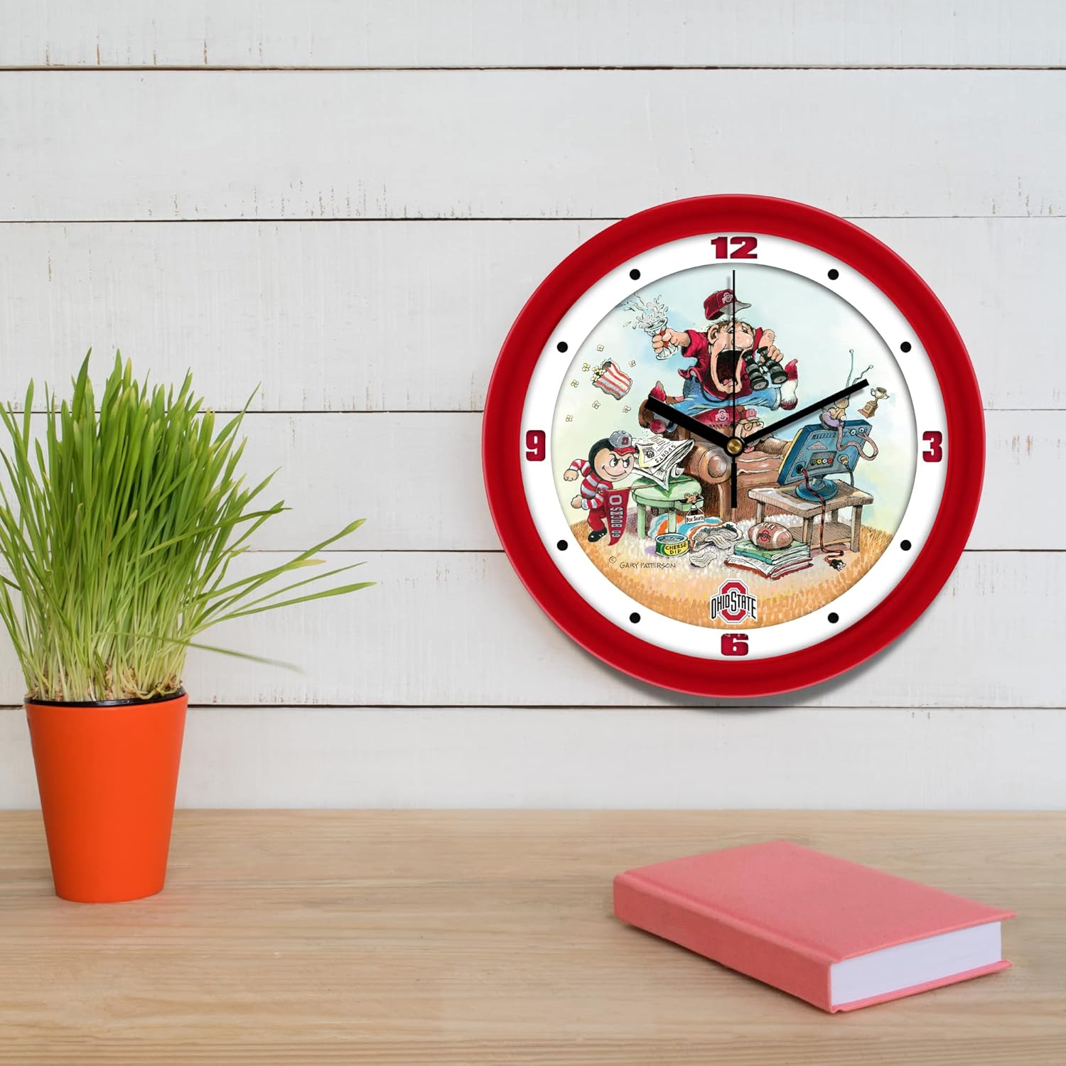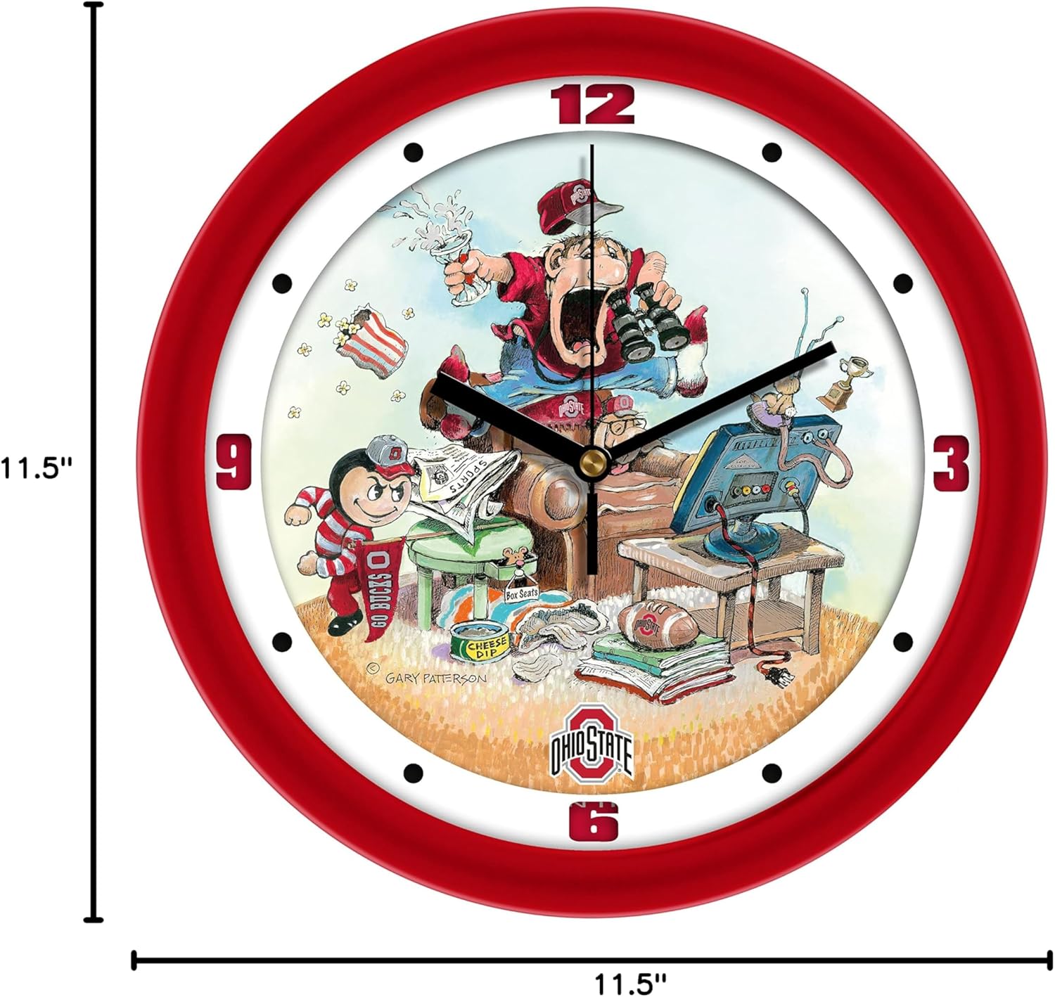 Straight from the Smile Factory – The New Collegiate Wall Clock Series from Sun Time features the amazing and team-spirited artwork by one of America’s best-loved artists, Gary Patterson! “The Fan” wall clock is perfect for adding some fun and nostalgic team spirit to any room, and portrays a feeling any big team fan can relate with! Spend more time smiling by adding this clock to your home today! Clock Specifications: -Durable plastic housing with color-coordinated outer bezel -Glass Crystal for improved visibility and durability -Silent Sweep Quartz Movement – (1x AA Battery Required – Not Included) -Measurement: 11.5” Diameter