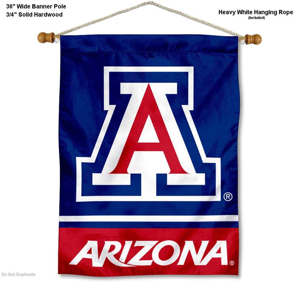 This Flag, Banner or Pennant measures a large 30 in x 40 in, is made of 1-ply Polyester with 2-ply bottom "School Name" panel, includes a 36" wide hardwood 3/4" diameter banner pole, and thick white hanging cord. These "Ready to Hang" Wall Banners are Officially Licensed and Team, College, or University Approved Approved and the Screen Printed logos are Viewable on Both Sides (Team Logo is Reversed on Opposite Side, School Name bottom panel is 2-Ply Double-Sided). The removable banner pole can fit sleeved flags up to 30" wide.