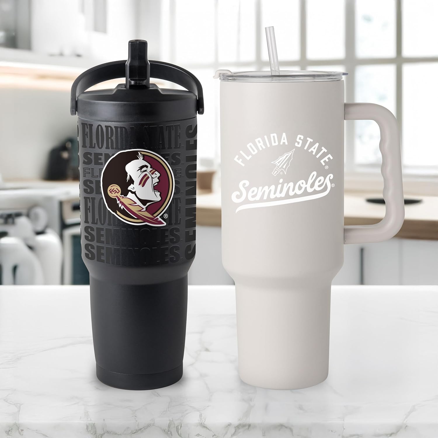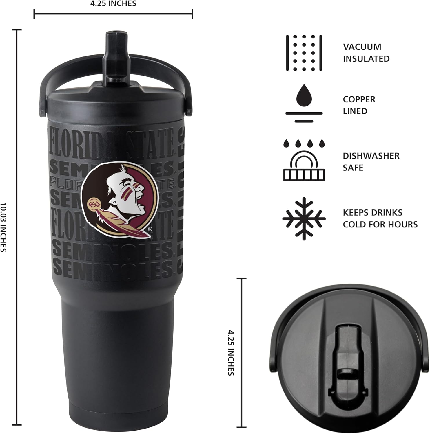 Stay refreshed with this officially licensed FANMATS 30 oz and 40 oz Stainless Steel Tumbler Set. Featuring double-wall vacuum insulation to keep beverages ice cold for hours, these tumblers include easy-to-carry handles for convenient hydration on the go. The durable powder coated finish and modern team design combine performance, comfort, and style.