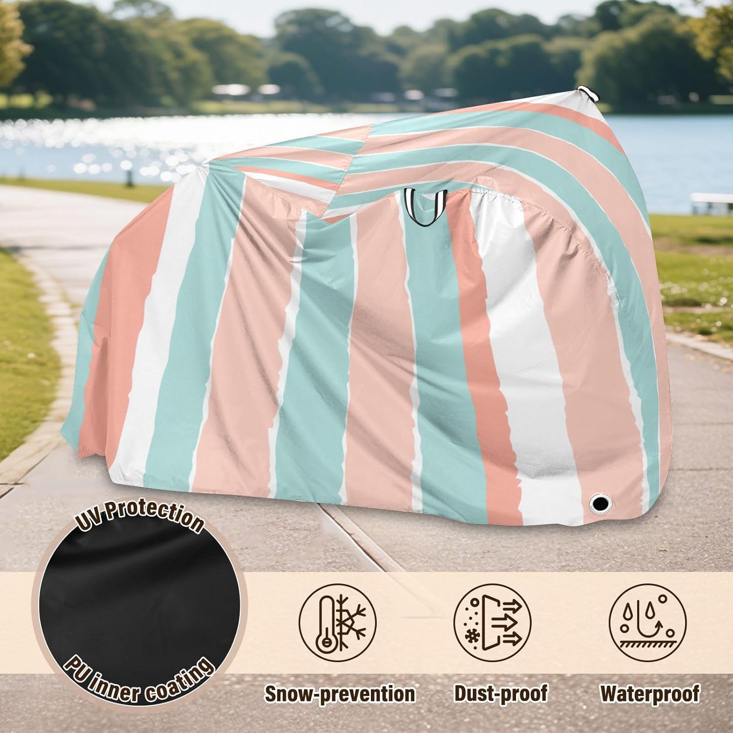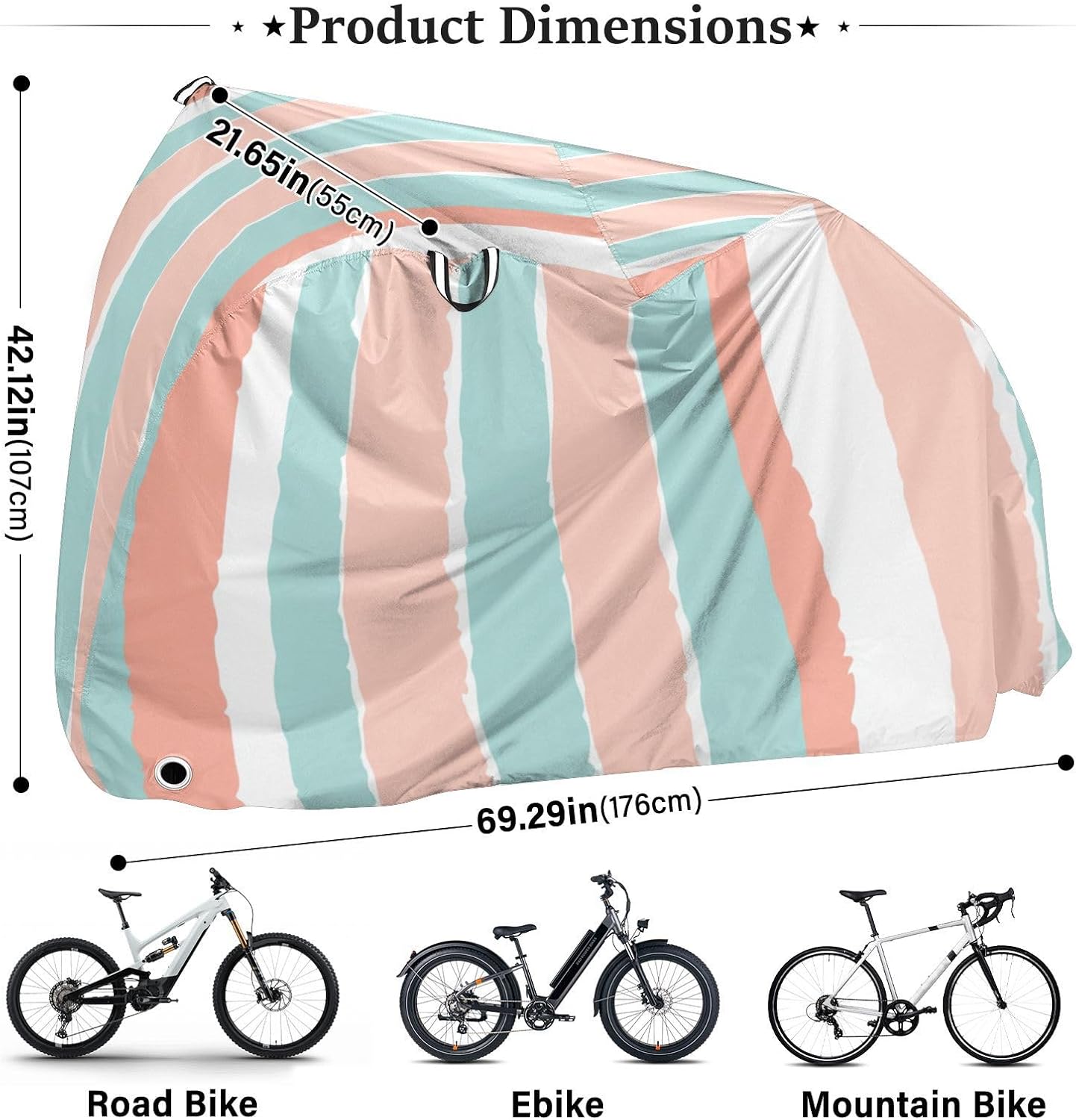 Size: 176*107*55CM/69*42*21.6Inches. Bike Cover Outdoor is suitable for road bikes, electric bikes, mountain bikes, etc. Before purchasing, please be sure to measure the length, width and height of the first to avoid buying the wrong size.Outdoor Bike Cover Material: Umbrella waterproof fabric. This fabric has strong tear resistance, can effectively protects your bike from the sun, dust and water, and safeguard your .Product Features: Outdoor Bike Cover provides all-weather protection for your against rain, snow, leaves, bird droppings, wind, dust, scratches, etc., and offers UV protection up to 50+. Keep your as good as new for a long time.Convenient Storage: Bike Cover is a reserved lock hole at the front wheel position and a latch at the rear wheel position for fixing the cover. When not in use, it can be put into a storage bag.Outdoor Accessories: This Cover for Bike provides a protective guarantee for your beloved car and is an essential accessory for outdoor camping. It can also be given as a present to your fellow colleagues and friends.
