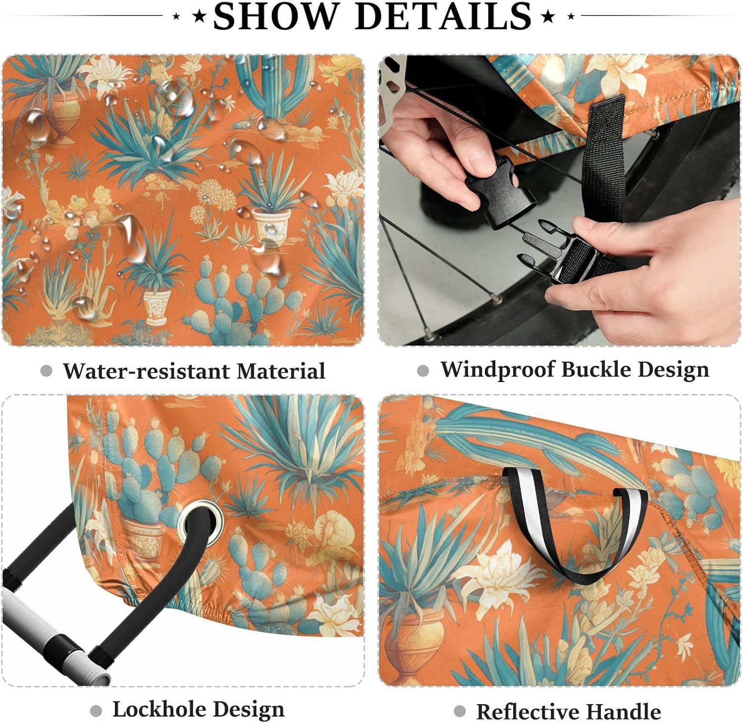 Dimensions: 69 x 42 x 21.6 inches. Bike Covers is suitable for most ordinary bicycles. Please measure the length, width, and height of the before purchasing to avoid buying the wrong size.Material: Umbrella waterproof fabric. Made of umbrella waterproof fabric, Bike Covers Outdoor is sun-proof, dust-proof, and water-repellent.Product Function: This Outdoor Bike Cover can prevent rainwater from wetting the bike body on rainy days, and block direct ultraviolet rays, providing shading, heat insulation, and protection against rain and snow weather.Product Design: There is a reserved lock hole at the front wheel position, which can facilitate locking the vehicle. Bike Cover are buckles at the rear wheel position to secure the cover and prevent it from moving.Outdoor Accessories: Essential accessories for outdoor cycling. It can also be given as a present to your colleagues and friends.