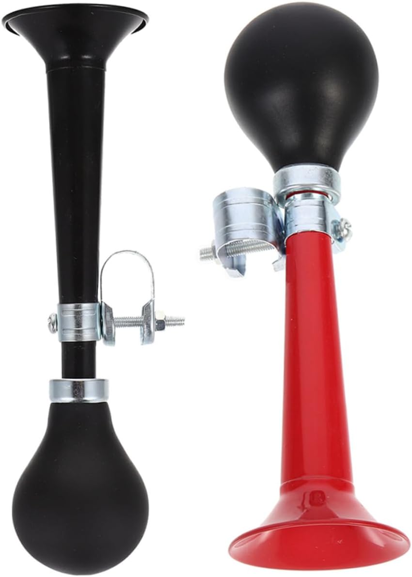 Package Include 2 x Bike Horns Features -Material:PVC, electroplated iron bell -Color:Assorted Color bike bell -Size:20.00X6.00X6.00cm/7.86X2.36X2.36in pocket bike horns -Pedestrians and passing vehicles can clearly hear your ringtone, early warning for our security manual bike horn. -It's one of the essential bike accessories for bike riding. The bell is crisp and the ending is long squeeze bike horn. -Widely used for standard bike, mountain bike, road bike, folding bicycles, etc bike ringer. -Adopted from PVC and electroplated iron material, it is and long-lasting to use manual air horn. -The bell has a creative press ball design, which can bring US clear, sweet and loud tone bicycle horns for adults loud.Goods Descriptionbike bell Loud horns can attract the attention of others and alert others to your arrival at a distance from you.bike bells Are you looking for a professional bike bell? Are you looking for a sturdy, and reliable handlebar bike bell that can complete multiple tasks? If so, our products will be your choice! Our professional handlebar bike bell will meet your needs