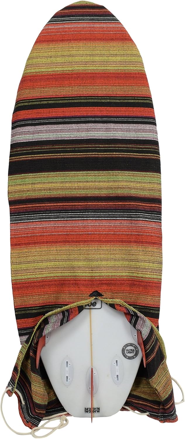A tightly woven handmade surfboard sock / surfboard bag brought to you by Open Road Goods in collaboration with Mermaid Dress. This product is handmade by local townspeople and supports small independent artisans! (This is NOT made in large factory, it is individually crafted by hand!). Similar to DAKINE and FCS board bags, but with one of a kind style! This board bag adds a little extra flavor and steez to your shred stick while protecting it during light transport. It features a simple drawstring closure system to ensure a tight solid seal while enabling you to quickly get your surf board in or out of the bag. A great day use bag to protect your board during trips to your favorite local surf spot.