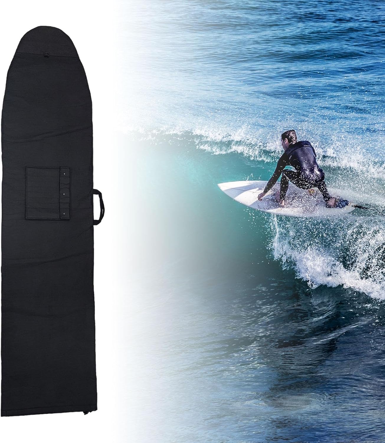 Description: - 【Premium Material】: Our surfboard bag is made from canvas material, water resistant, wear resistant, lightweight and portable, providing reliable protection for your board whether on a damp beach or during transportation. - 【Convenient Storage Design】: The handheld surfboard bag features a large zipper opening for easy access to your surfboard without any struggle. - 【Great Protection】: The water sports surfboard storage bag is with insulation inner layer, which can keep your surfboard at an ideal temperature range during transportation and storage, avoiding damage due to temperature changes. - 【 Buckle Feature】: The tail end of our surfboard bag has a buckle design that allows you to roll the bag up to where your surfboard is placed and secure it with the buckle. - 【Multifunctional Details】: Our surfboard organizer bag with handle features detachable external pocket measuring 35cmx30cm/13.78inchx11.81inch, convenient using.Specification: - Material: CanvasSize Chart:S: Bag 215cmx59cm/84.65inchx23.23inch, Bag Toe Length 18cm/7.09inch, Zipper Opening Length 143cm/56.30inch, Removable Pocket 35cmx30cm/13.78inchx11.81inch, Suitable for surfboards 5.4-6.8inches in lengthM: Bag 254cmx61cm/100.00inchx24.02inch, Bag Toe Length 21cm/8.27inch, Zipper Opening Length 170cm/66.93inch, Removable Pocket 35cmx30cm/13.78inchx11.81inch, Suitable for surfboards 6.1-8.0inches in lengthL: Bag 312cmx65cm/122.83inchx25.59inch, Bag Toe Length 25cm/9.84inch, Zipper Opening Length 208cm/81.89inch, Removable Pocket 35cmx30cm/13.78inchx11.81inch, Suitable for surfboards 8.8-9.1inches in length
